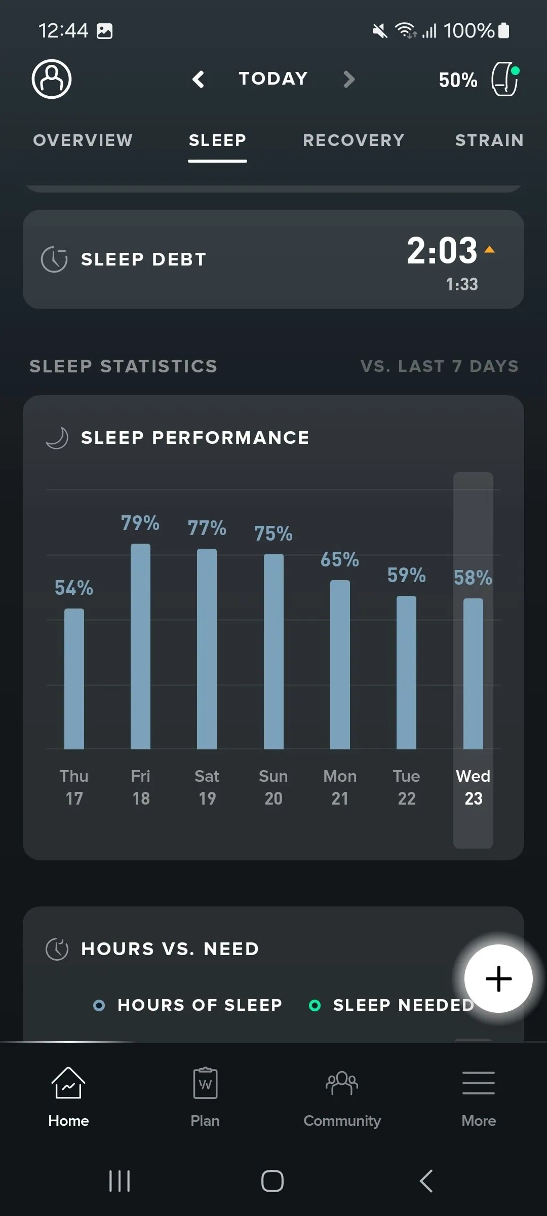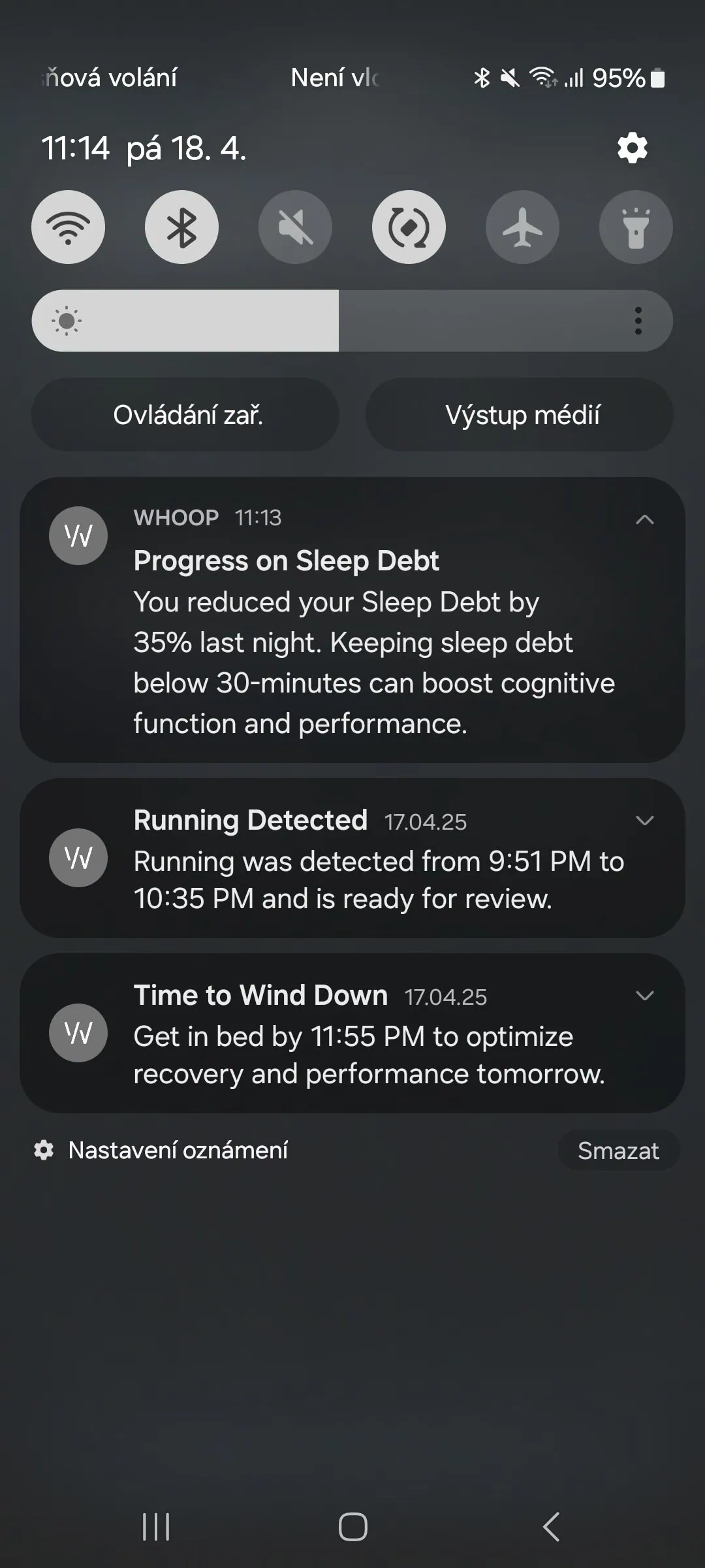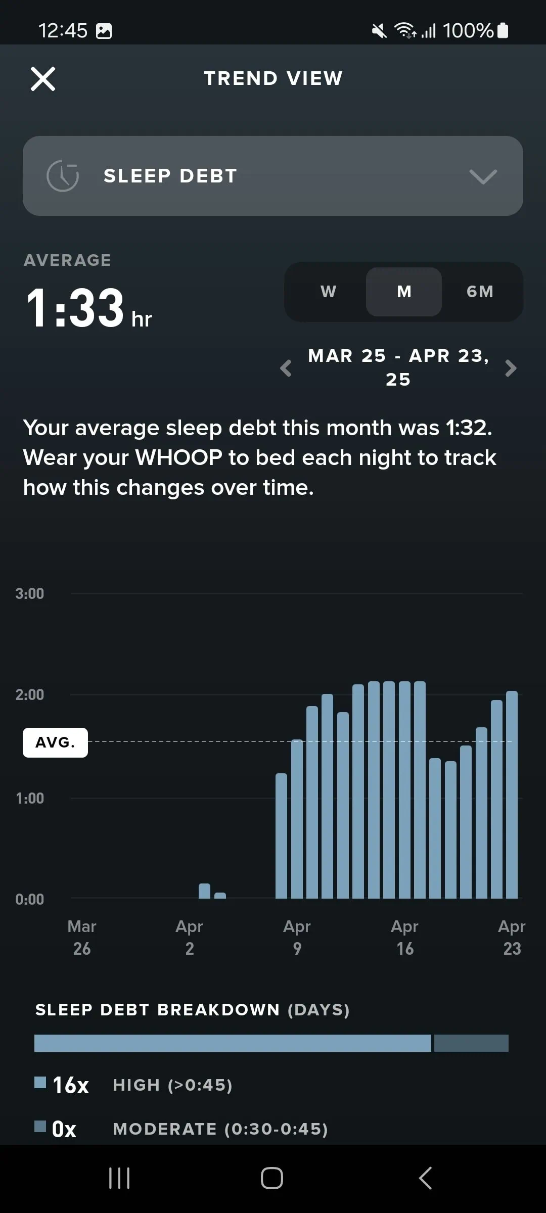 Ogólnie oceniam monitorowanie snu bardzo pozytywnie. WHOOP potrafił oszacować czas pobudki z maksymalnym odchyleniem do pięciu minut. Całkowity czas snu zazwyczaj odpowiadał rzeczywistości. Dług snu zmieniał się adekwatnie do długości mojego snu. Krótszy i mniej jakościowy sen zwiększał dług, natomiast solidny nocny odpoczynek go zmniejszał. Ocena procentowa snu niemal zawsze pokrywała się z moimi odczuciami w ciągu dnia.