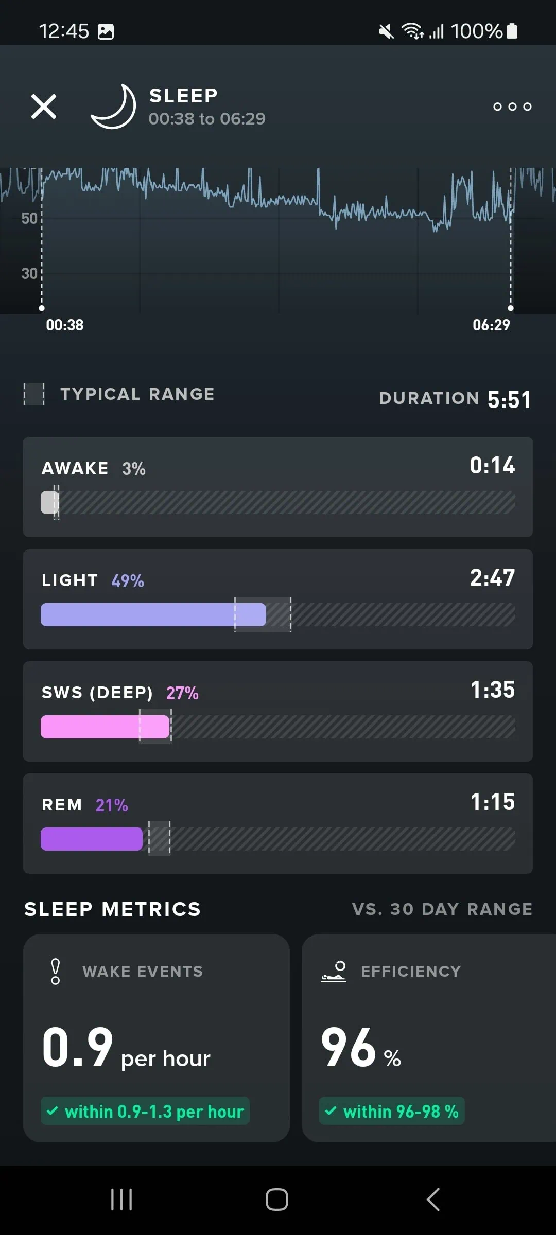 Wynik snu, który zarejestrowała mi opaska, nie jest idealny. W moim przypadku to przejściowy, wymagający okres, a nie norma, którą chciałbym komukolwiek polecać. Jestem przekonany, że dorosły człowiek powinien zapewnić sobie co najmniej siedem godzin jakościowego snu każdej nocy.