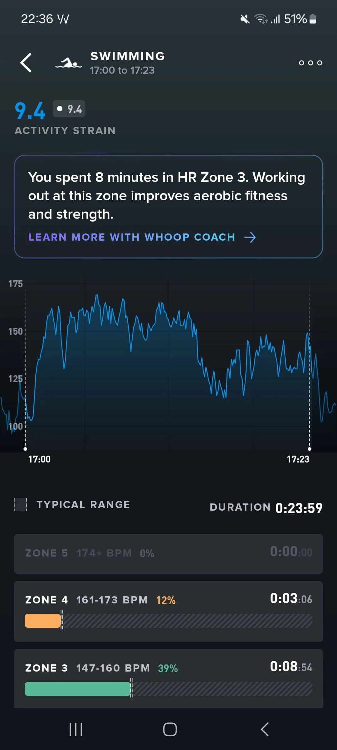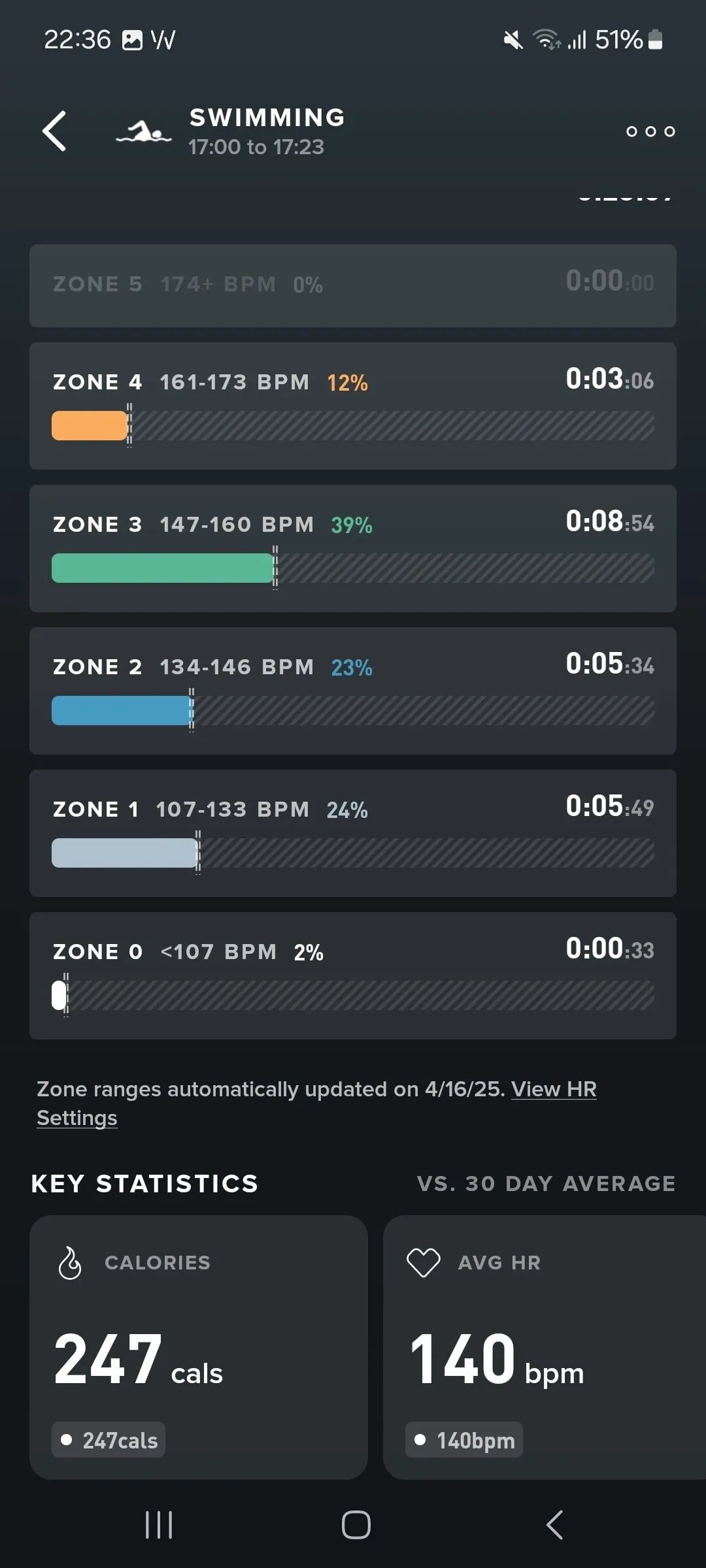 Na końcu znajdziesz kilka rekomendowanych aktywności sportowych, które danego dnia będą dla Ciebie najbardziej korzystne. Aktywności są uzupełnione o idealny podział stref tętna, co pozwala precyzyjnie zaplanować intensywność. Mnie asystent najczęściej proponował pływanie i bieganie, bo właśnie tym aktywnościom poświęcam najwięcej czasu. Gdy starałem się trzymać zalecanej intensywności, aktywność była według mnie do wykonania, choć wymagało to pewnego wysiłku. Dobre wyniki nie przychodzą za darmo.