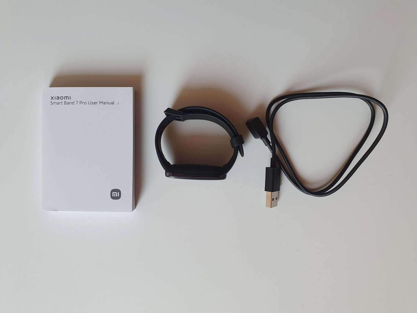 W opakowaniu znajdują się tylko niezbędne elementy - sama opaska sportowa, kabel zasilający i dokumentacja użytkownika.