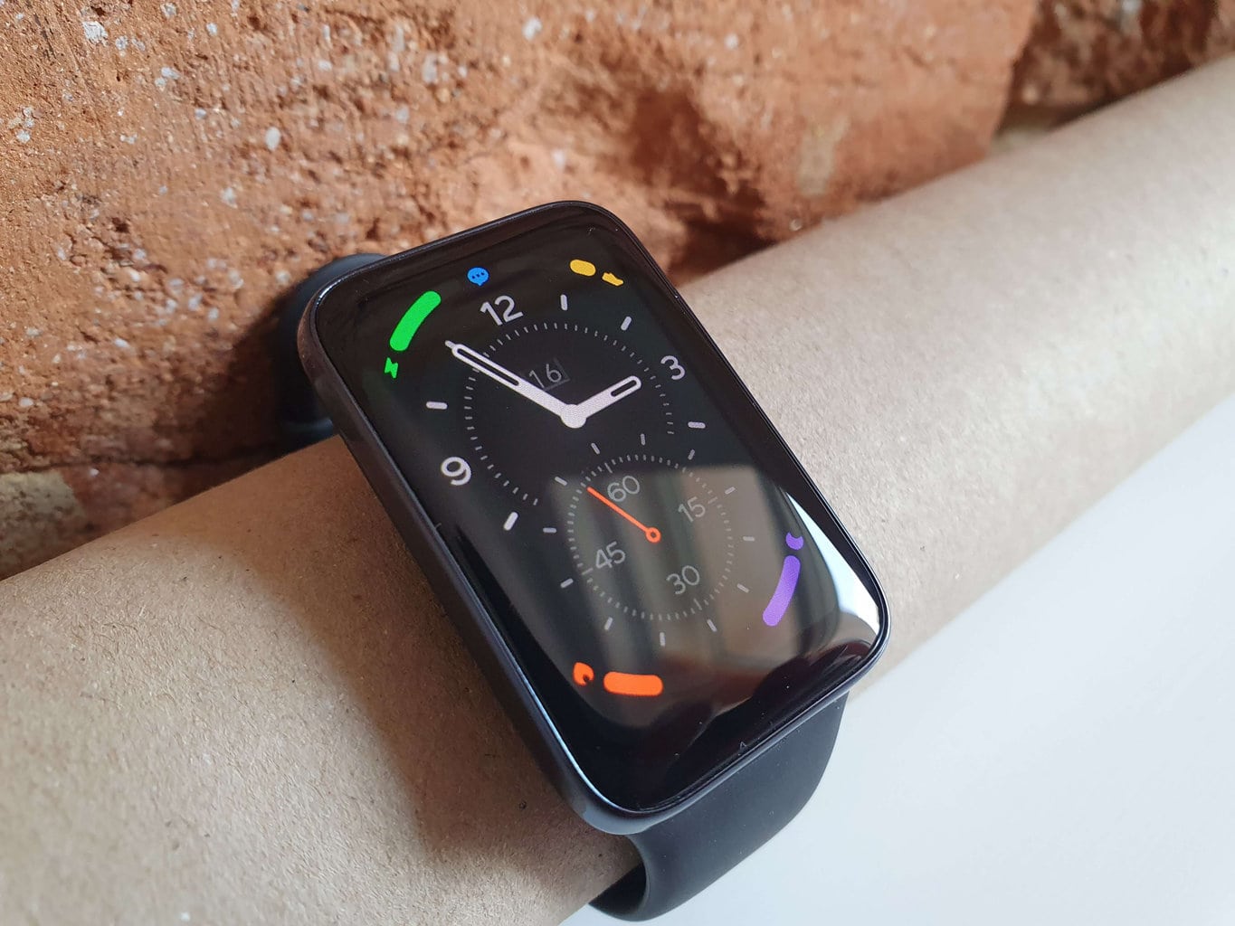 Z perspektywy designu opaska wygląda bardziej elegancko niż tradycyjne smartbandy, takie jak Xiaomi Mi Band 7 lub Samsung Galaxy Fit 2. Opaska posiada duży, lekko wypukły wyświetlacz o przekątnej 1,64 cala i rozdzielczości 280 x 456 pikseli.