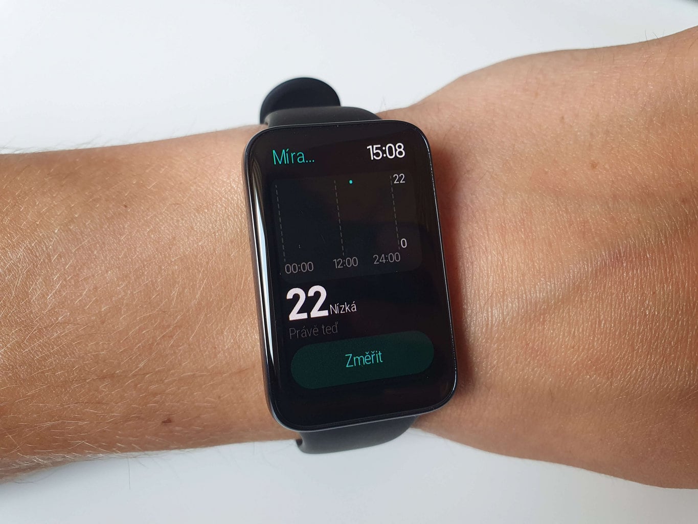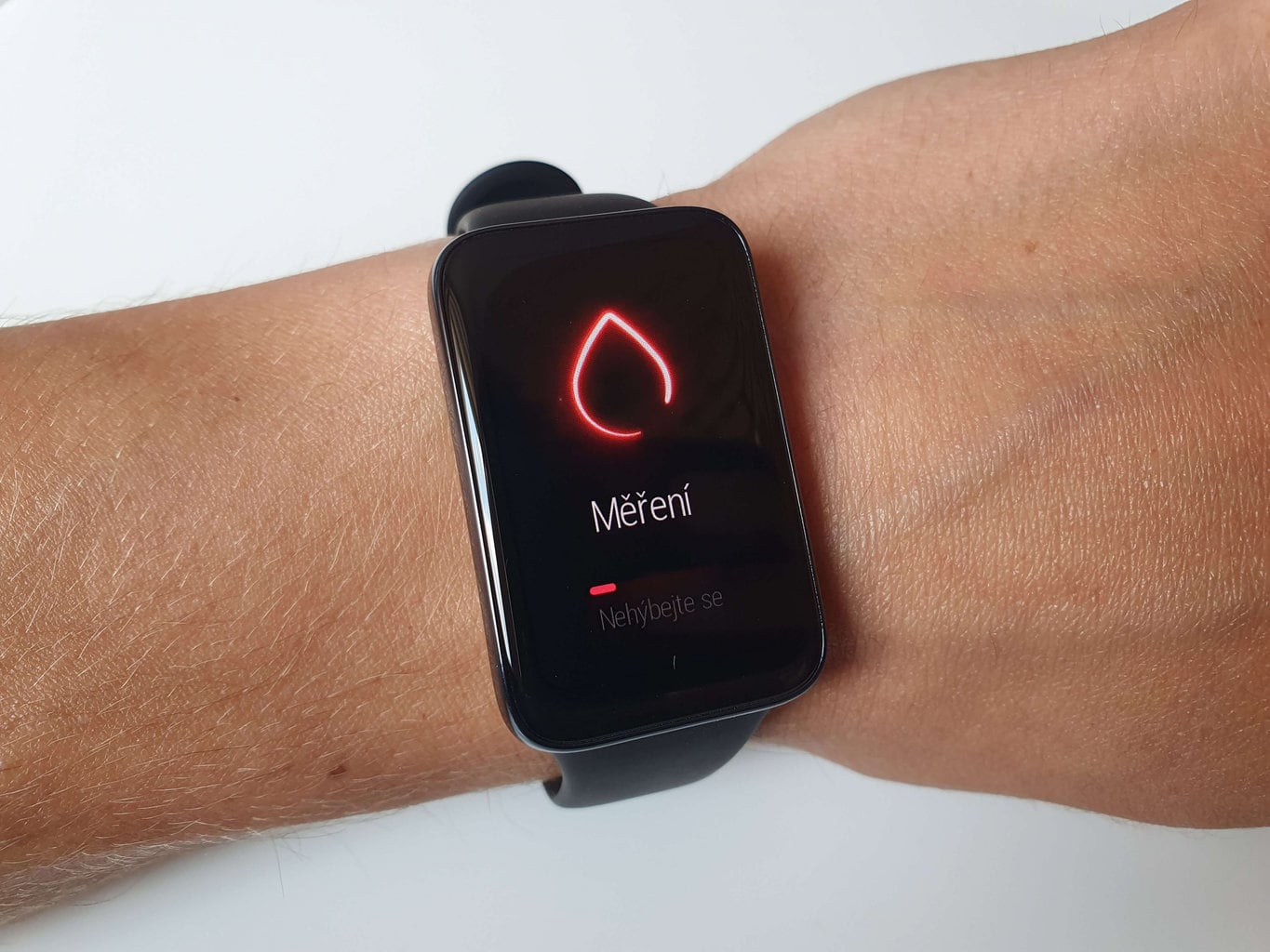 Pomimo mocnego zaciśnięcia paska na ręce, podczas testów udało nam się uzyskać wyniki tego pomiaru tylko raz. Każda kolejna próba kończyła się niepowodzeniem, którego przyczyny opaska nie potrafiła określić.
