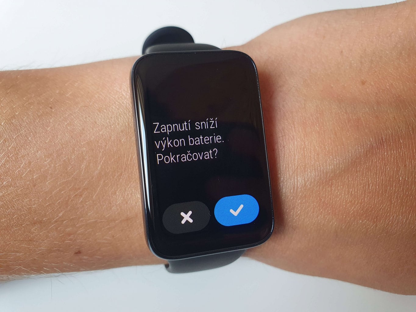 Niektóre funkcje, które znacząco przyczyniają się do zużycia energii, są domyślnie wyłączone. Po ich aktywacji opaska ostrzega, że może się szybciej rozładowywać. Ponieważ bransoletka nie jest wyposażona w tryb oszczędzania energii, te powiadomienia systemowe są przydatnym dodatkiem.