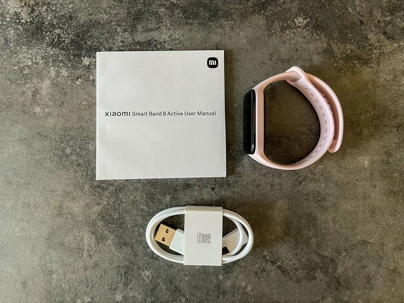 Opaska sportowa jest sprzedawana w niewielkim pudełku, zawierającym wszystko, czego potrzebujesz. Oprócz samego urządzenia z jednym paskiem znajdziesz tam również niezbędną dokumentację i kabel zasilający z dedykowanym złączem magnetycznym.