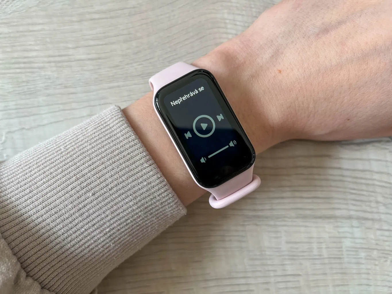 Opaska może być również używana do zarządzania muzyką aktualnie odtwarzaną na sparowanym telefonie komórkowym. Utwór można wstrzymać, ponownie uruchomić lub przełączyć. Jest też opcja regulacji głośności.