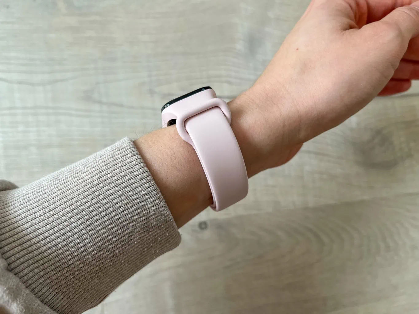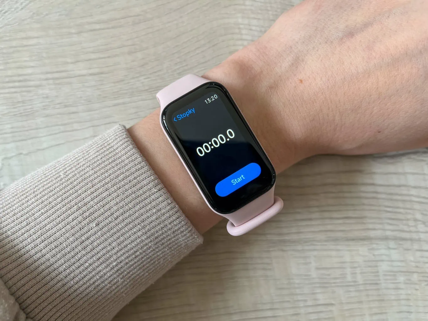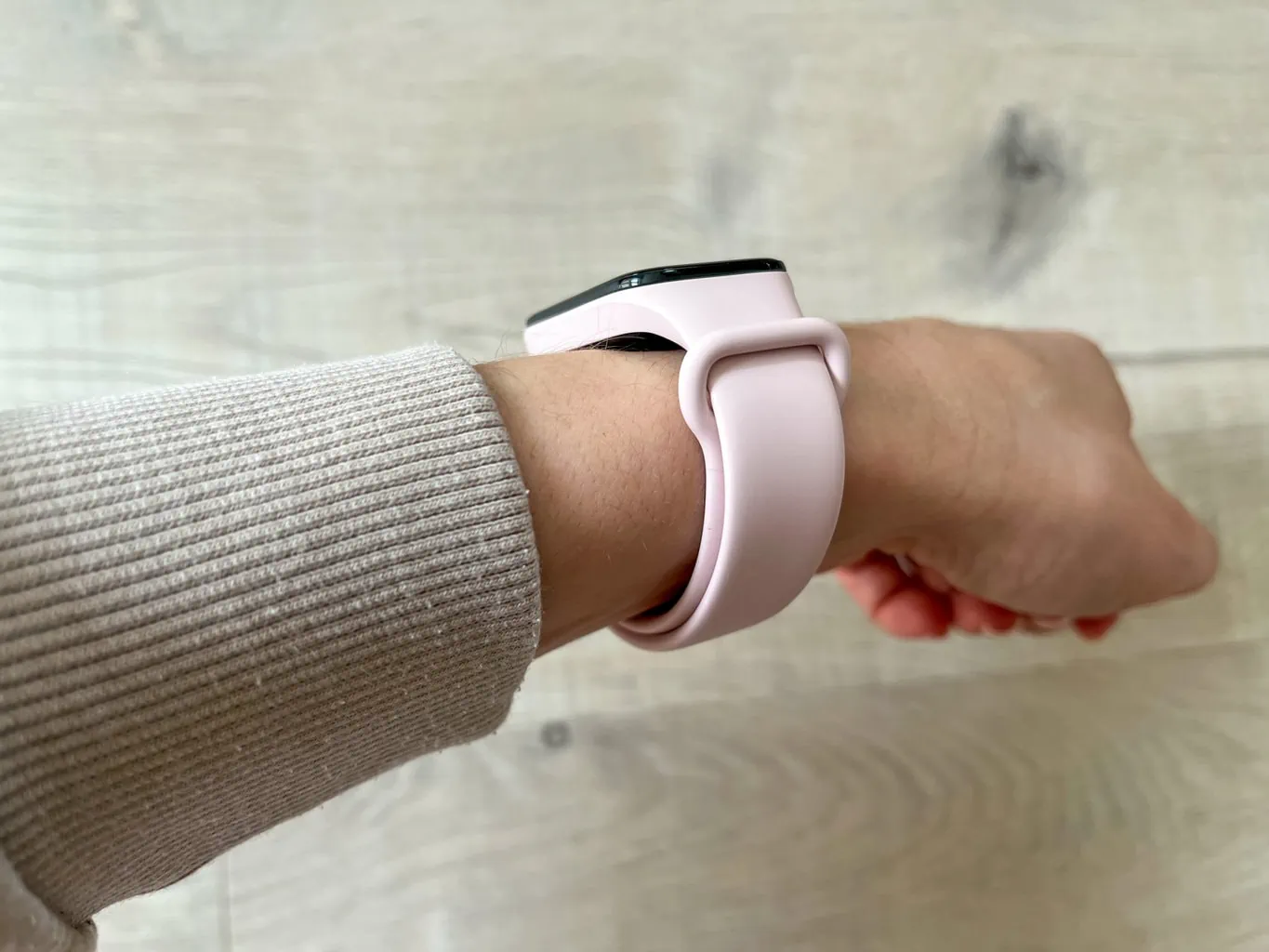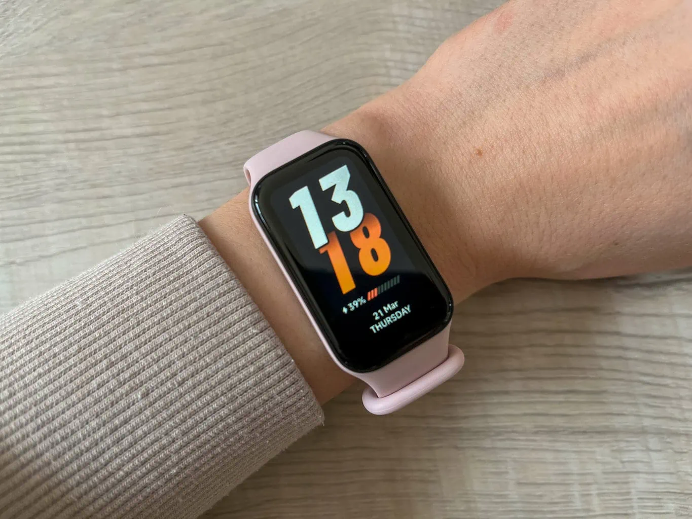 Opaska fitness Xiaomi Smart Band 8 Active zaskakuje kompaktowymi wymiarami i niską wagą wynoszącą zaledwie 14,9 grama (bez paska). Idealnie leży na nadgarstku i podczas moich testów zdecydowanie nie uwierała podczas wykonywania zwykłych codziennych czynności. Często wręcz zapominałam, że noszę ją na nadgarstku.