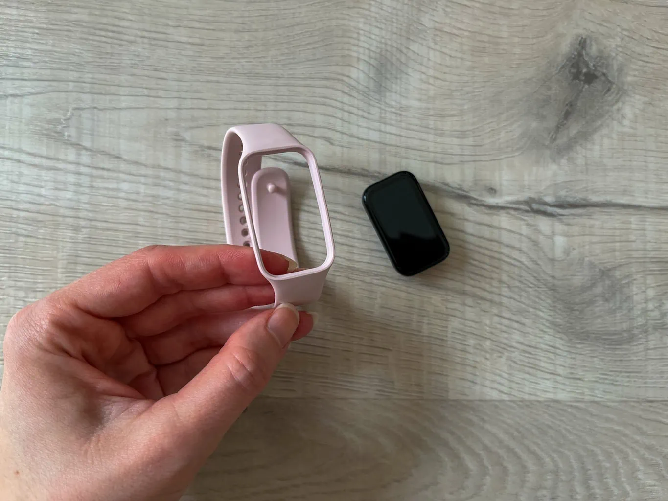Pasek jest wykonany z materiału TPU, który jest wygodny dla skóry nawet podczas całodziennego noszenia. Pasek można regulować w zależności od własnych potrzeb. Nie ma tutaj klasycznego mechanizmu szybkiego odpinania. Jeśli chcesz zmienić pasek na inny (bo nie podoba Ci się kolor albo pierwotny pasek jest już zużyty), należy "wydłubać" urządzenie z powierzchni paska. Jest to jednak stosunkowo łatwe do zrobienia palcami i nie wymaga żadnych specjalnych narzędzi.