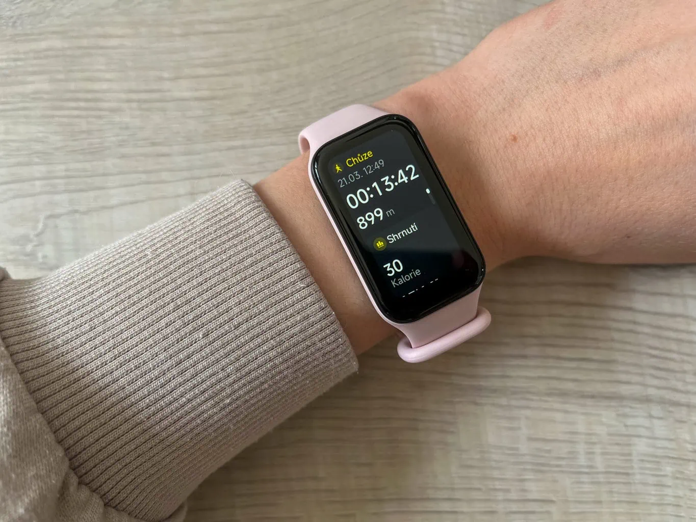 Podczas ćwiczeń opaska fitness pokaże czas, jaki upłynął od rozpoczęcia ćwiczeń, aktualne tętno (w tym poszczególne strefy tętna) oraz szacunkową liczbę spalonych kilokalorii. W przypadku wybranych aktywności (na przykład chodzenia lub biegania) dostępne są również informacje o prędkości i pokonanym dystansie. Po zakończeniu treningu można wyświetlić szczegółowe statystyki w aplikacji mobilnej.