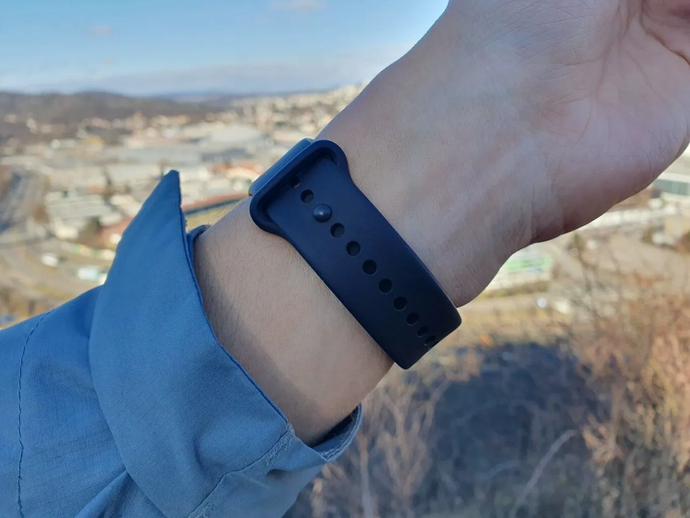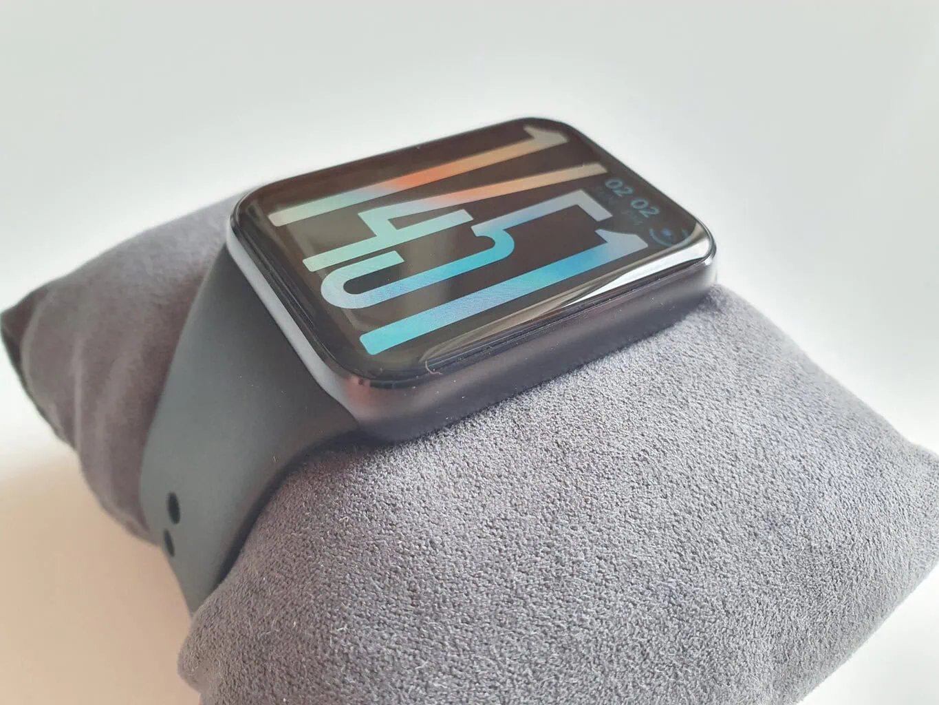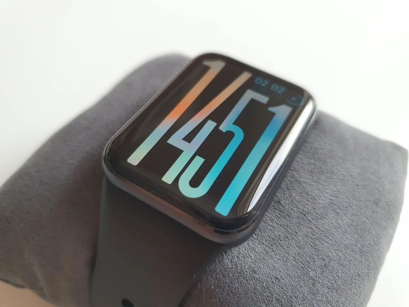 Opaska jest wyposażona w bliżej niesprecyzowane szkło hartowane w przeciwieństwie do Gorilla Glass 3 w poprzedniej generacji. Chociaż wypukłe szkło nie jest chronione ramką z boków, podczas testów nie udało mi się go zarysować. Kilkakrotnie zahaczyłem opaską o ścianę, metalową framugę czy poręcz, a na szkle nie pozostał żaden ślad uszkodzenia.