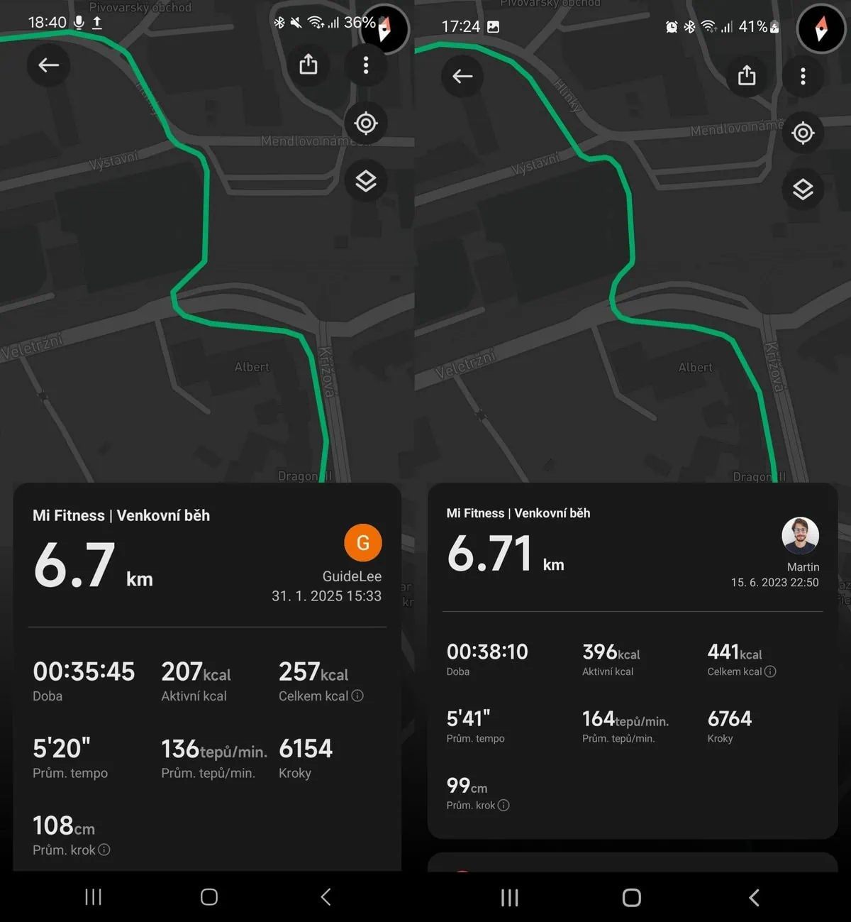 Producent podaje, że dokładność GPS wzrosła międzypokoleniowo o 33%. Miałem do dyspozycji zapis trasy biegu z opaski Xiaomi Smart Band 8 Pro, z którym porównałem dziewiątą generację. Na zdjęciu poniżej znajdziesz szczegóły tras z obu urządzeń.
