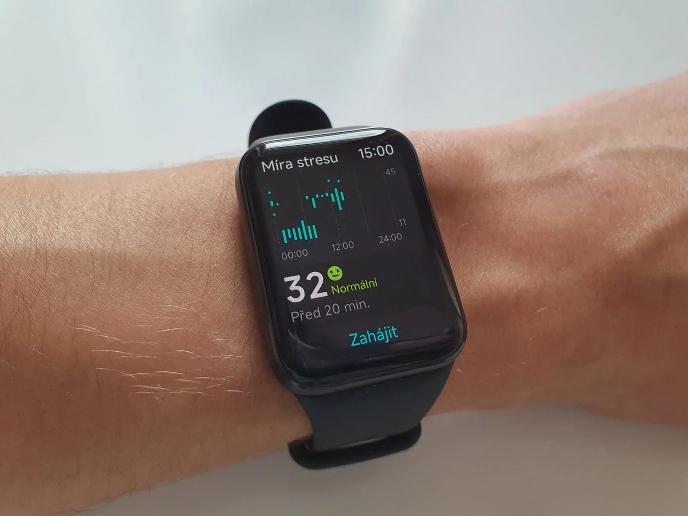 Na podstawie wahań tętna wyznaczane jest obciążenie stresem, które opaska może oceniać na żądanie lub regularnie w ciągu dnia. U mnie wartości zazwyczaj wahały się zgodnie z subiektywnymi odczuciami. Rano po przebudzeniu i podczas szybkiej rutyny przed wyjazdem wartości były wyższe. Po powrocie i chwili siedzenia przy komputerze stres ustabilizował się na niskich poziomach.