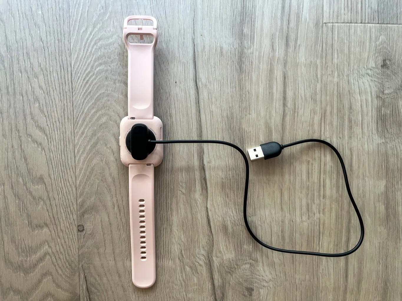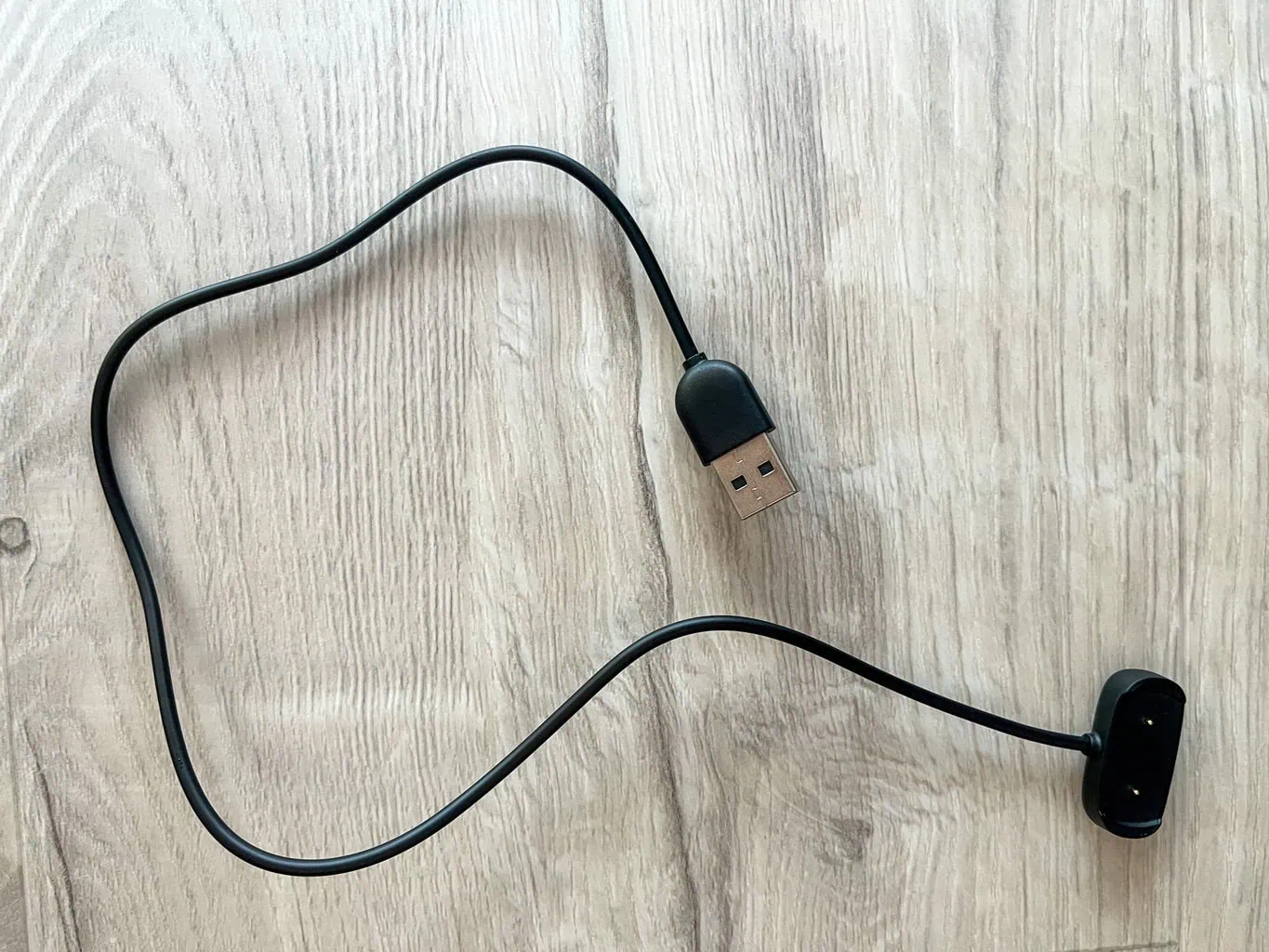 Do ładowania służy kabel zasilający z firmowym złączem. Pełne naładowanie zegarka trwa około 2 godziny. Niestety, urządzenie nie obsługuje szybkiego ładowania.
