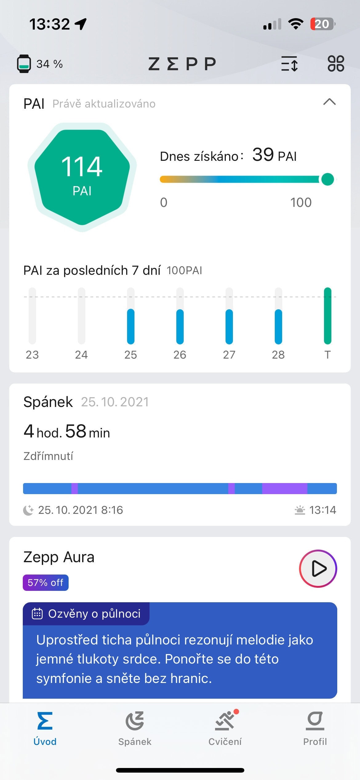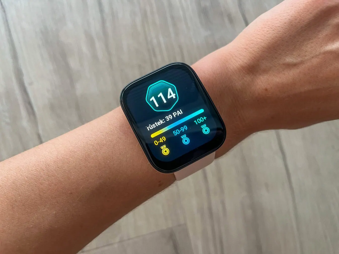 Podobnie jak inne smartwatche Amazfit, ten również obsługuje pomiar wartości PAI (Personal Activity Intelligence). Funkcja ta ocenia aktywność fizyczną w odniesieniu do poziomu sprawności. Obliczenia uwzględniają tętno, intensywność aktywności i dane fizjologiczne wprowadzone w aplikacji mobilnej (wzrost, waga, wiek).