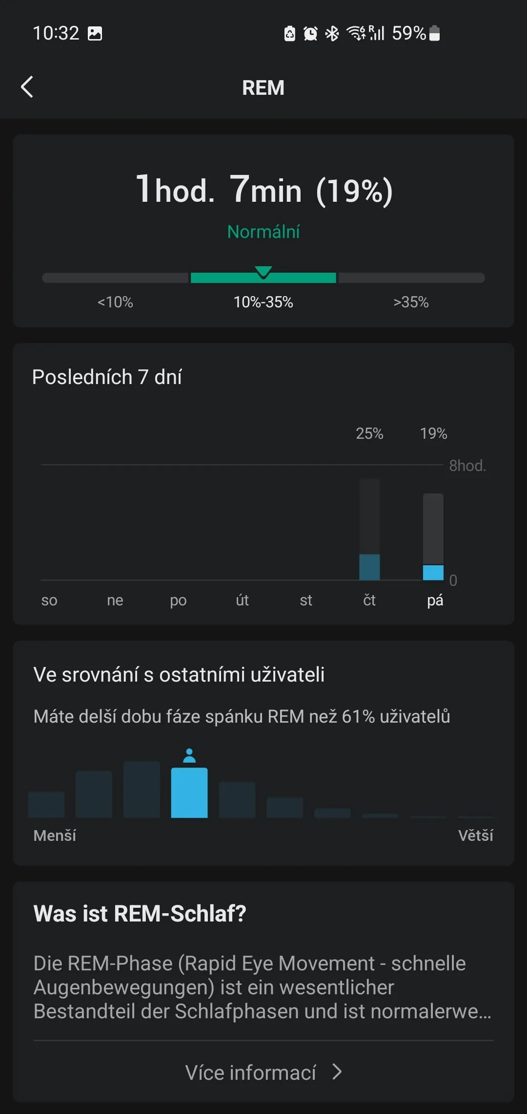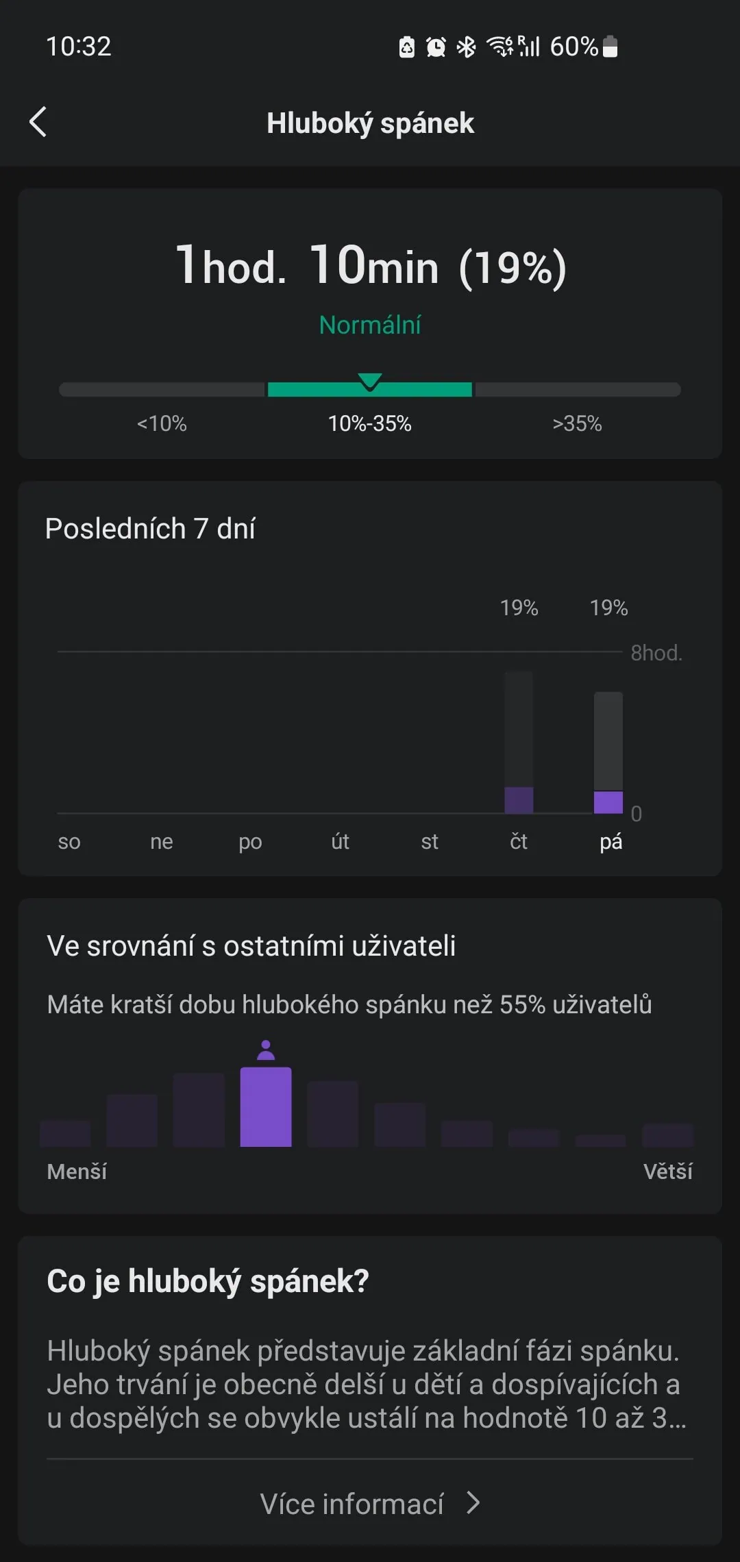 Kolejne informacje są dostępne w aplikacji Zepp. Oprócz długoterminowych zapisów i statystyk, daje ona również możliwość porównania swoich wyników z wartościami uzyskanymi przez innych użytkowników. Pozwoliło to na jeszcze lepszy wgląd w jakość mojego snu niż w przypadku konkurencyjnych zegarków, które zazwyczaj oferują jedynie krótki komentarz słowny.