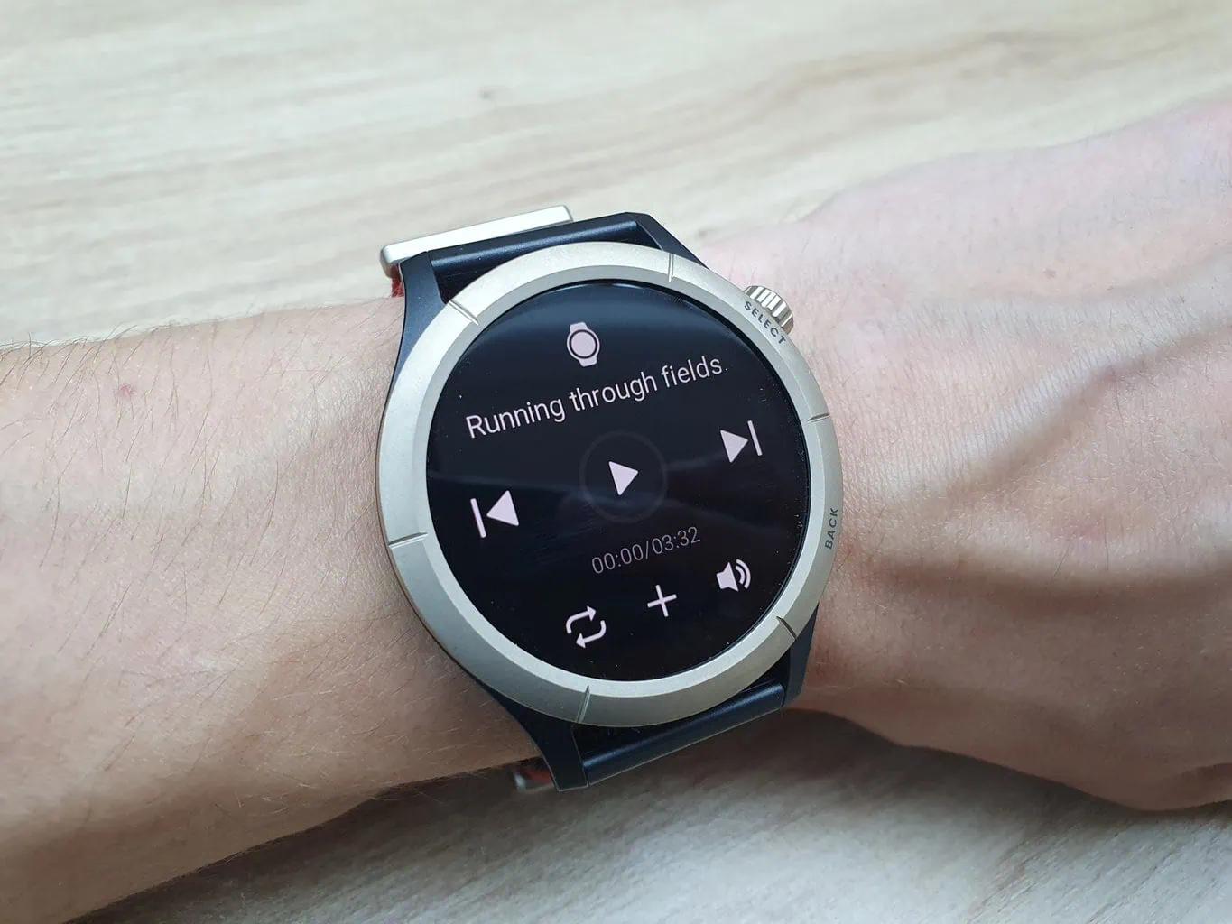 Zegarek posiada również pamięć wewnętrzną do słuchania muzyki offline. Utwory można kopiować do zegarka z pamięci telefonu, więc płatne konta Spotify lub YouTube Music nie są tutaj potrzebne. W przypadku zegarków z systemem Wear OS, posiadanie konta w jednej z powyższych usług jest już warunkiem koniecznym do słuchania muzyki.