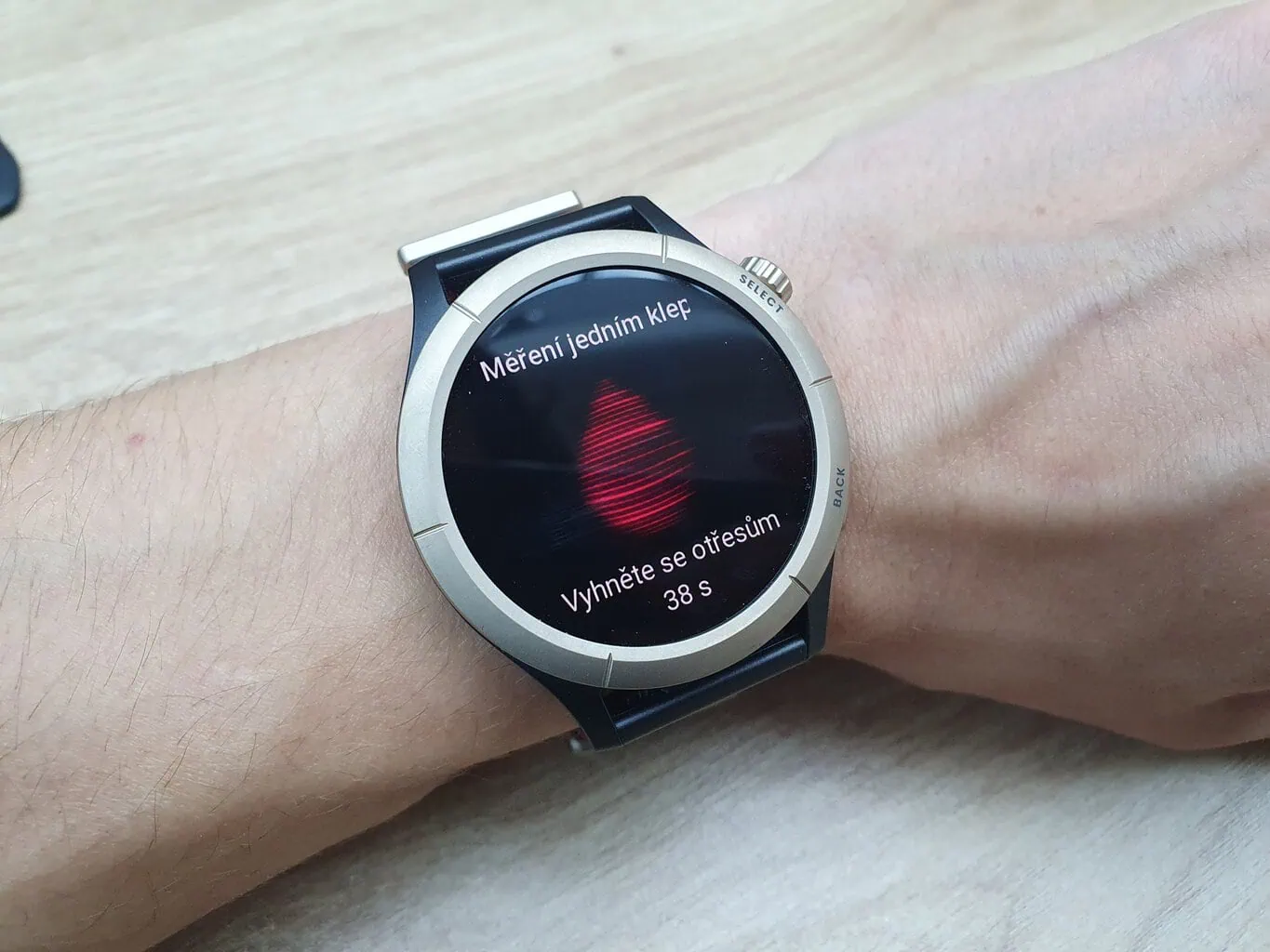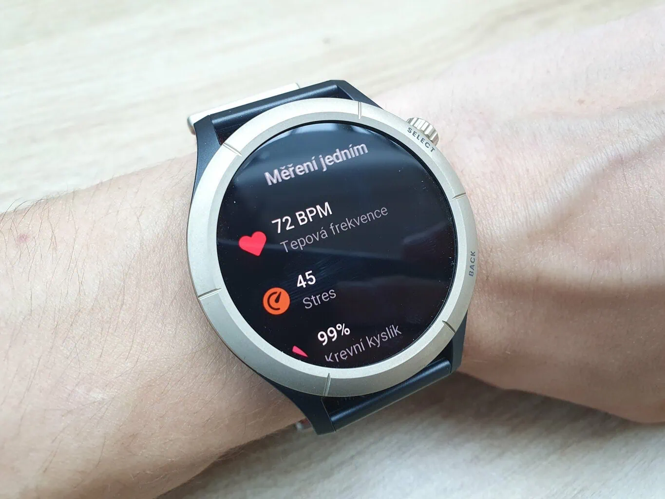 Na podstawie 45-sekundowego pomiaru zegarek oblicza poziom natlenienia krwi, aktualne tętno oraz obciążenie stresem. W przypadku bardziej konkurencyjnych zegarków każdy pomiar musi być wykonywany osobno, więc możliwość wykonania wszystkich naraz jest dużą zaletą. Analiza szacowanych wartości jest przejrzysta i zwięzła, a wyniki (z wyjątkiem niewielkich odchyleń) odpowiadają rzeczywistości.