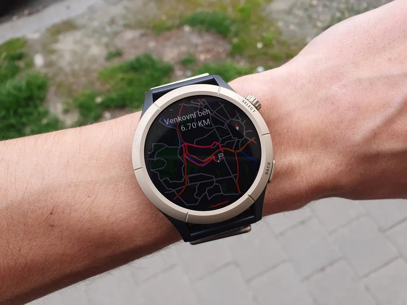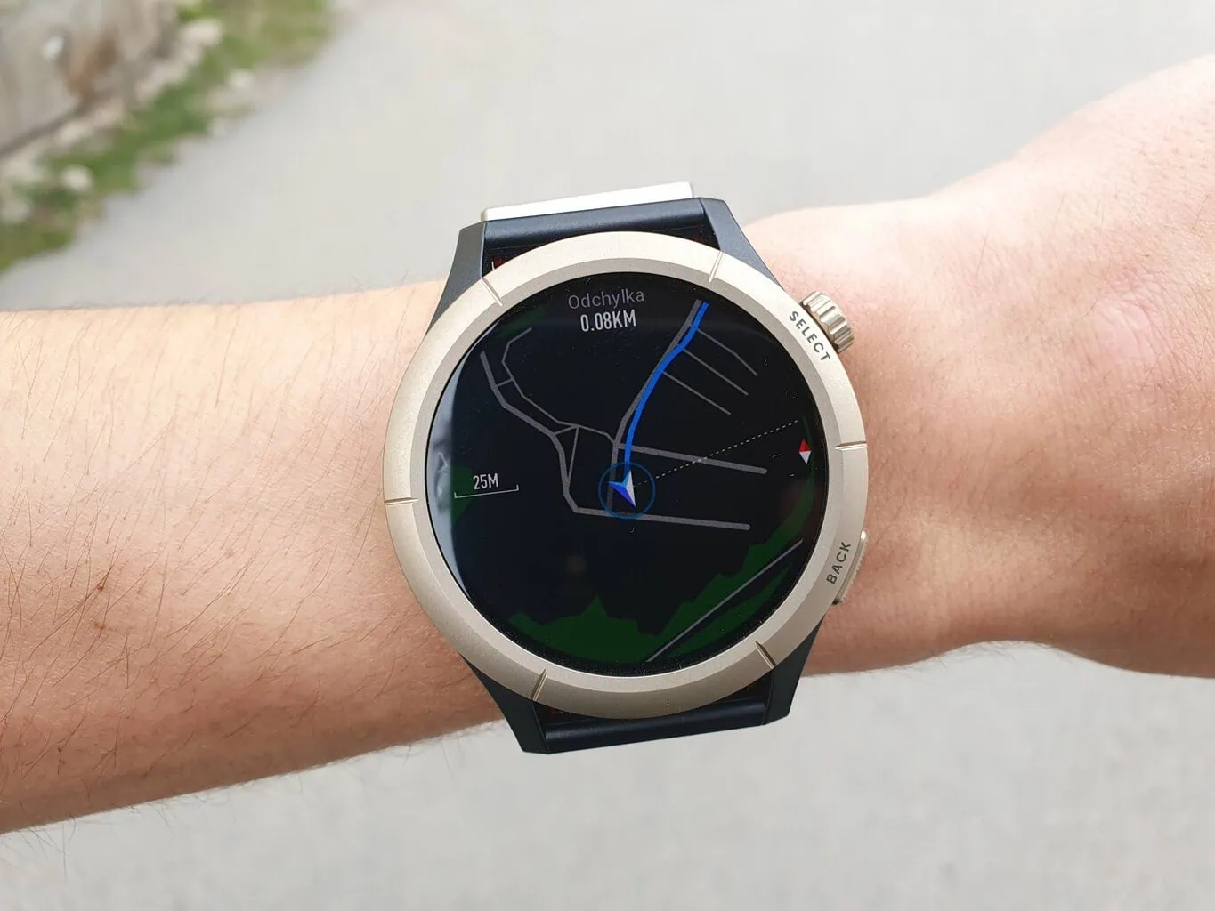 Mapy są oparte na OpenStreetMap, co jest dość powszechne w przypadku zegarków z systemem innym niż Wear OS (który korzysta z Google Maps). Mapy są szczegółowe, czytelne, a procesor zegarka ma wystarczającą moc, by nawigacja po mapach była płynna. W przypadku, gdy zboczyłem z trasy, zegarek ostrzegł mnie i wskazał kierunek, w którym powinienem się udać, aby wrócić na trasę.