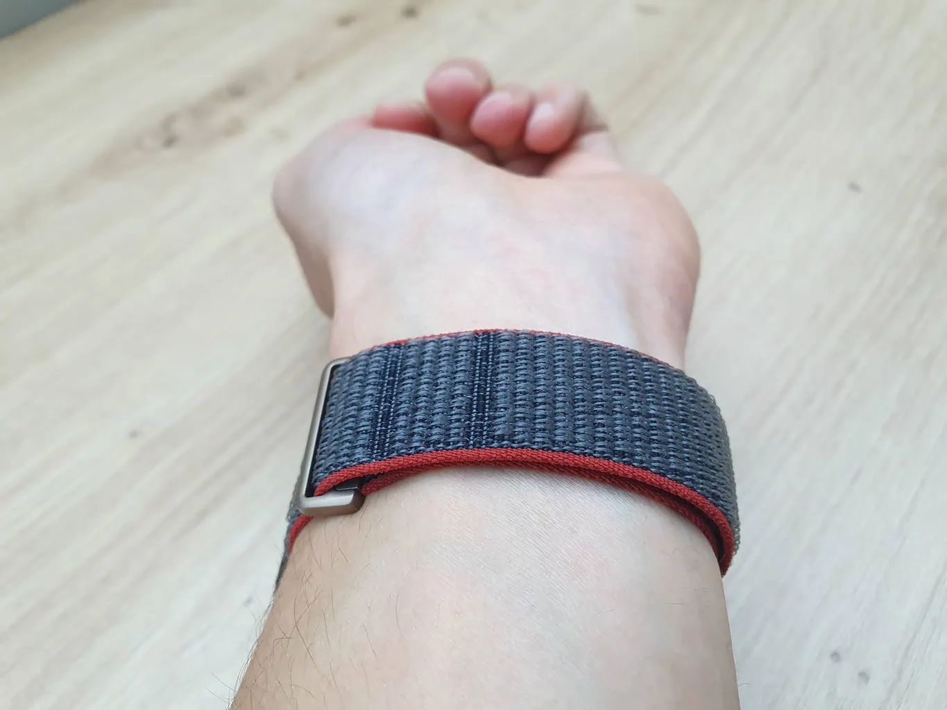 Ostre krawędzie paska nieco drażniły moją skórę, gdy założyłem go po raz pierwszy, ale z biegiem dnia krawędzie zmiękły i noszenie stało się nieco wygodniejsze. Pasek jest jednak mało elastyczny, więc odpowiednie dostosowanie go do nadgarstka zajęło mi trochę czasu. Koniec końców musiałem regulować ciasność dopasowania przy każdej aktywności. Ponadto kilka razy zdarzyło się, że musiałem mocniej zacisnąć pasek podczas uprawiania sportu, ponieważ zegarek nieprawidłowo rejestrował tętno.