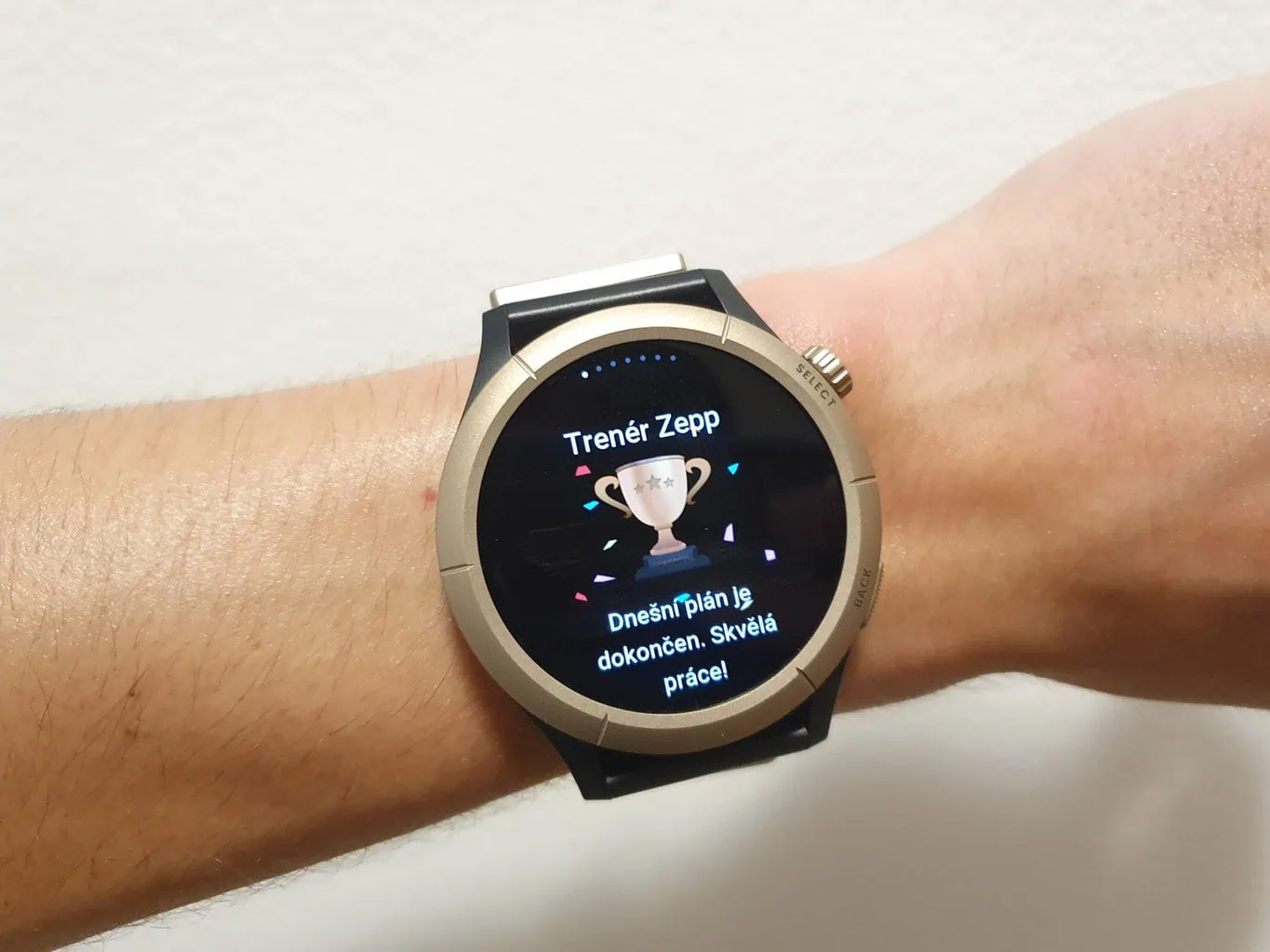 Wśród funkcji zdrowotnych znajdziemy poręczny pomiar za jednym dotknięciem czy całkiem dokładne monitorowanie snu. Dzięki funkcji Zepp Aura zegarek może pomóc w odpoczynku, a panie mogą skorzystać z przejrzystego kalendarza menstruacyjnego. Wśród inteligentnych funkcji znajdują się m.in. przechowywanie muzyki do słuchania offline, dublowanie połączeń telefonicznych oraz domyślne odpowiedzi na przychodzące powiadomienia. Rozczarował mnie za to brak modułu NFC: jest on w końcu dostępny nawet w dużo tańszych zegarkach.