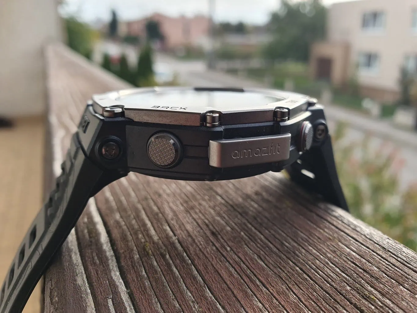 Nie mam zastrzeżeń do wymiarów i ergonomii przycisków, ale przydałaby się obecność reakcji wibracyjnej po naciśnięciu. Po prawej stronie obudowy znajduje się osłona z napisem Amazfit, pod którą kryje się mikrofon i wysokościomierz barometryczny. Po przeciwnej stronie obudowy znajduje się mała ilustracja przedstawiająca góry, co jest sugestią ze strony producenta, że mamy do czynienia z urządzeniem przeznaczonym do użytku w plenerze. Podsumowując, Amazfit T-Rex 3 sprawia wrażenie solidnego, trwałego i niezawodnego smartwatcha.