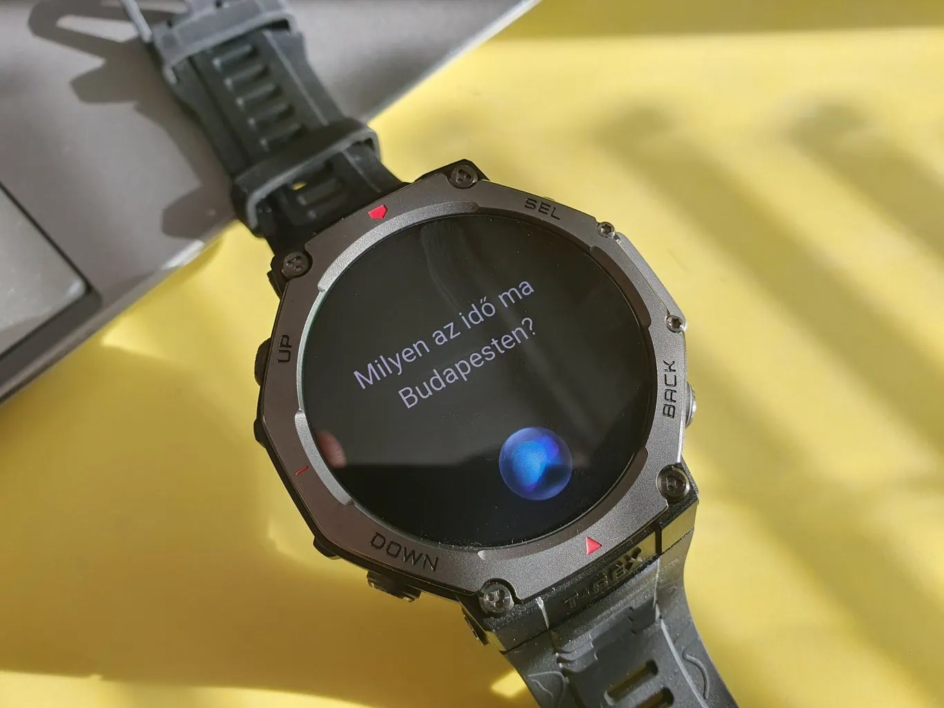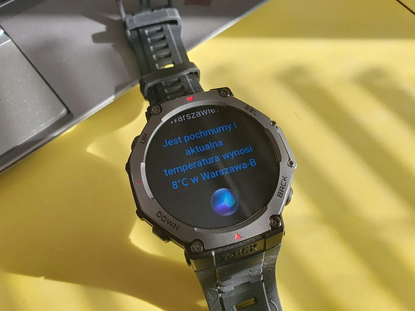 Słabym punktem tej funkcji jest to, że zawsze wymaga połączenia Bluetooth z telefonem. By uzyskać odpowiedzi na pytania, które nie są związane z funkcjami zegarka, potrzebne jest również połączenie telefonu z internetem. Niestety, WiFi zegarka okazało się nie wystarczające, co jest dość paradoksalną sytuacją. Jednak przy wydawaniu takich poleceń, jak rozpoczęcie aktywności lub wyświetlanie liczby spalonych kalorii, wystarczające będzie sparowanie z telefonem bez internetu.