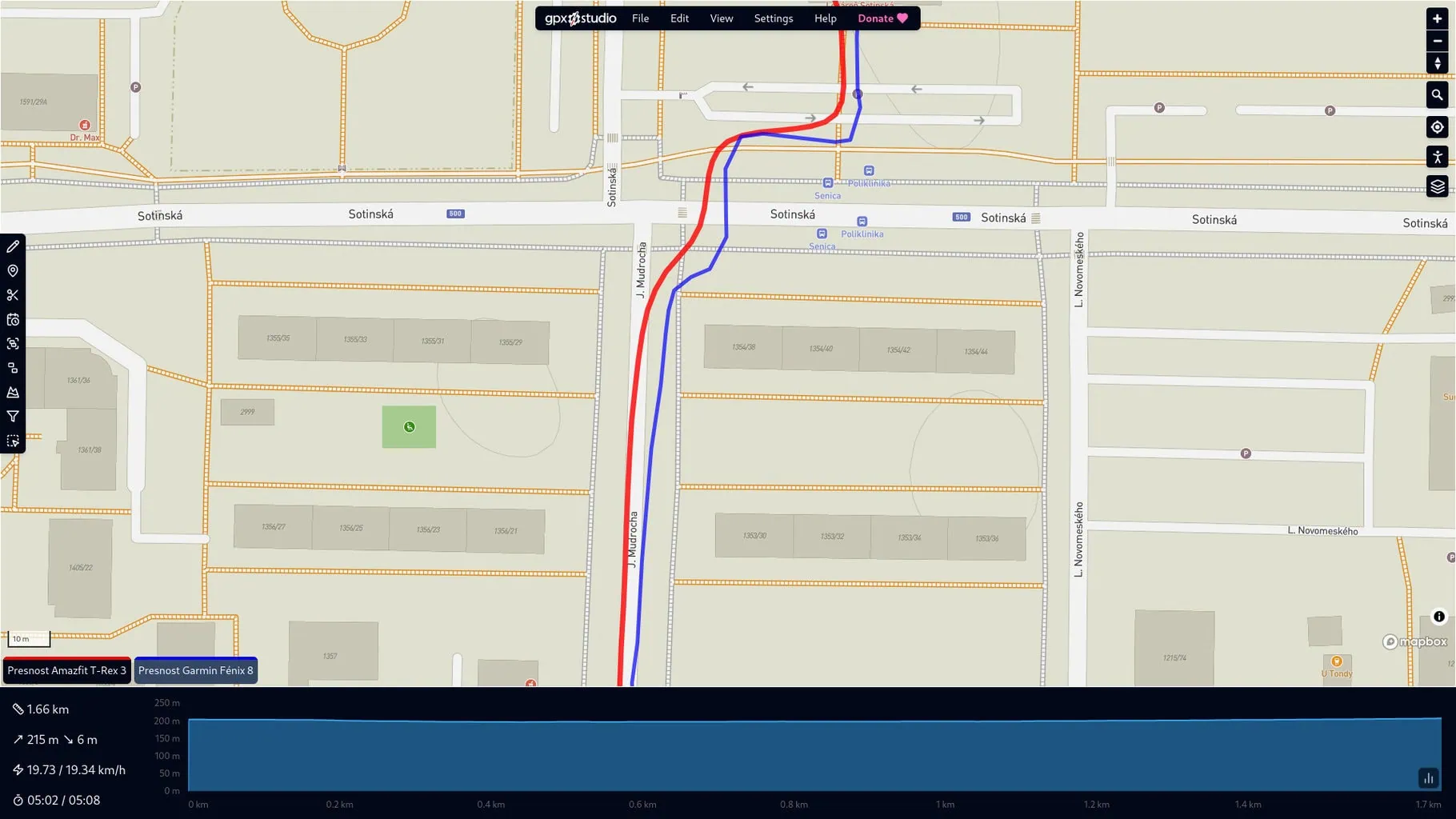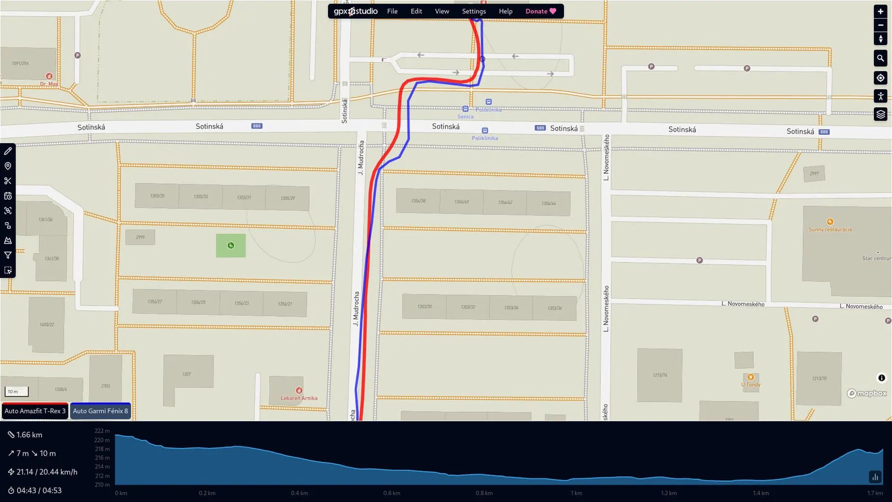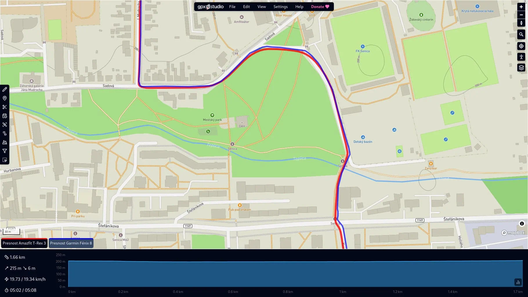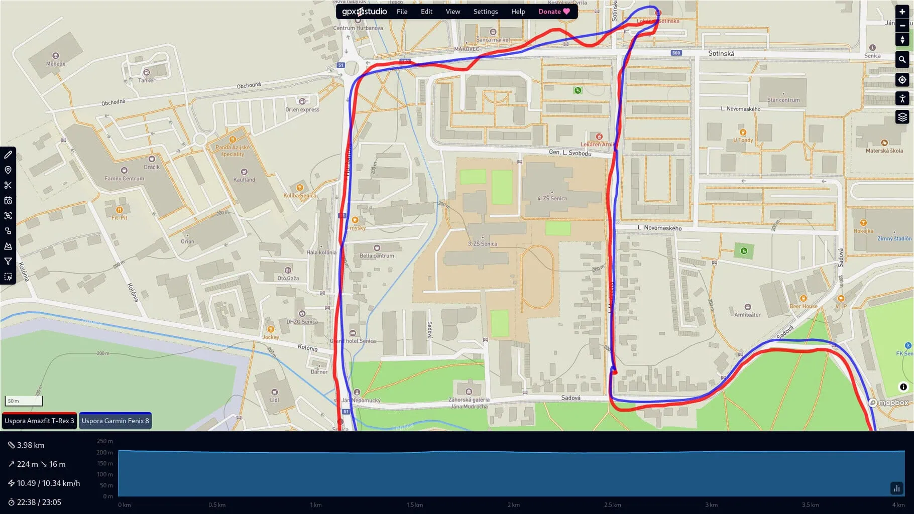 Do testów używałem głównie krótkiej trasy, która zaczynała się przy wyjeździe z domu, prowadziła przez las, obszar mieszkalny i kończyła się w obszarze zabudowanym. Jak widać, dokładność pomiaru obu zegarków jest porównywalna we wszystkich ustawieniach, co było dla mnie miłym zaskoczeniem. Jedyną zauważalną różnicą, jaką spostrzegłem, był tryb oszczędzania baterii, w którym T-Rex 3 wykazywał większe odchylenia.