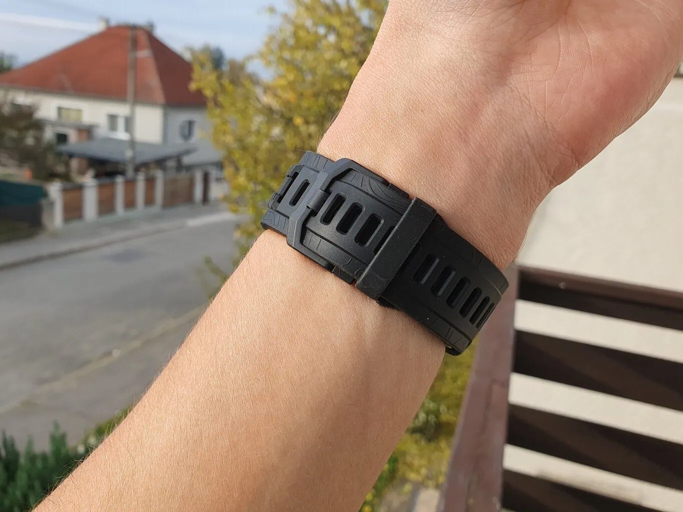 Koperta jest ukształtowana tak, aby pasek dostosowywał się do kształtu ręki. Zegarek jest przeznaczony dla osób z nadgarstkami o obwodzie 145-210mm. Na moim cienkim przegubie trzymał się pewnie i nie powodował dyskomfortu, nawet gdy był mocno zaciśnięty. Dzięki wyprofilowaniu i miękkości paska, w żadnym miejscu mnie nie uciskał, tak jak miało to miejsce w przypadku Garmin Fenix 8. Pasek w modelu Fenix 8 jest bowiem wyposażony w mechanizm QuickFit, który jest plastikowy i nieodkształcalny, więc tym samym uciskał mnie nadgarstek.