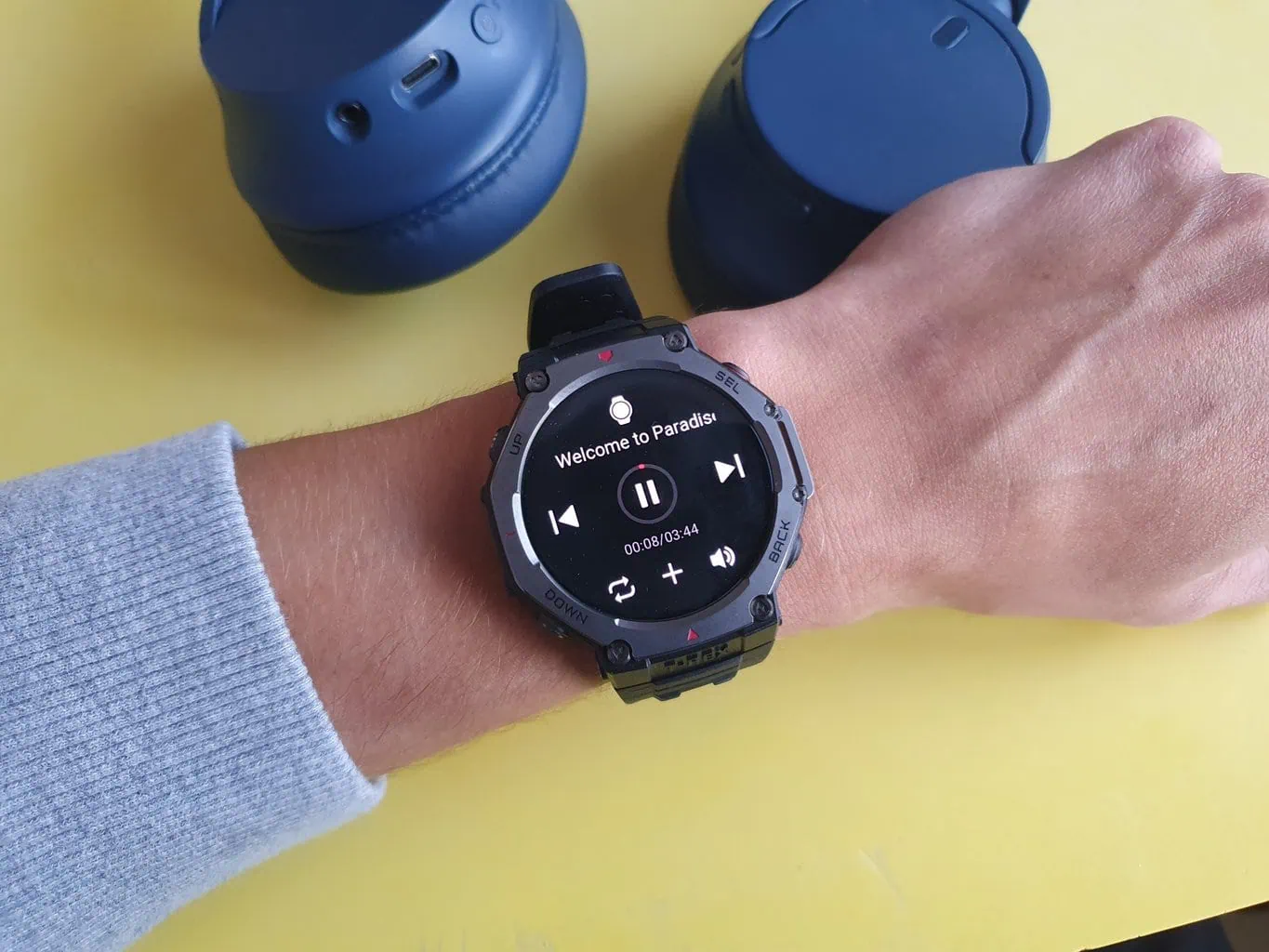Praktycznym narzędziem jest także zarządzanie muzyką. Zegarka można używać do odtwarzania muzyki z telefonu lub skorzystać z 26 GB pamięci na własną muzykę i podcasty. Za pomocą aplikacji możesz przesłać dowolne pliki mp3 bezpośrednio na zegarek. W trybie offline można słuchać muzyki, podłączając słuchawki bezprzewodowe. Serwisy streamingowe takie jak YouTube Music czy Spotify nie są obsługiwane.