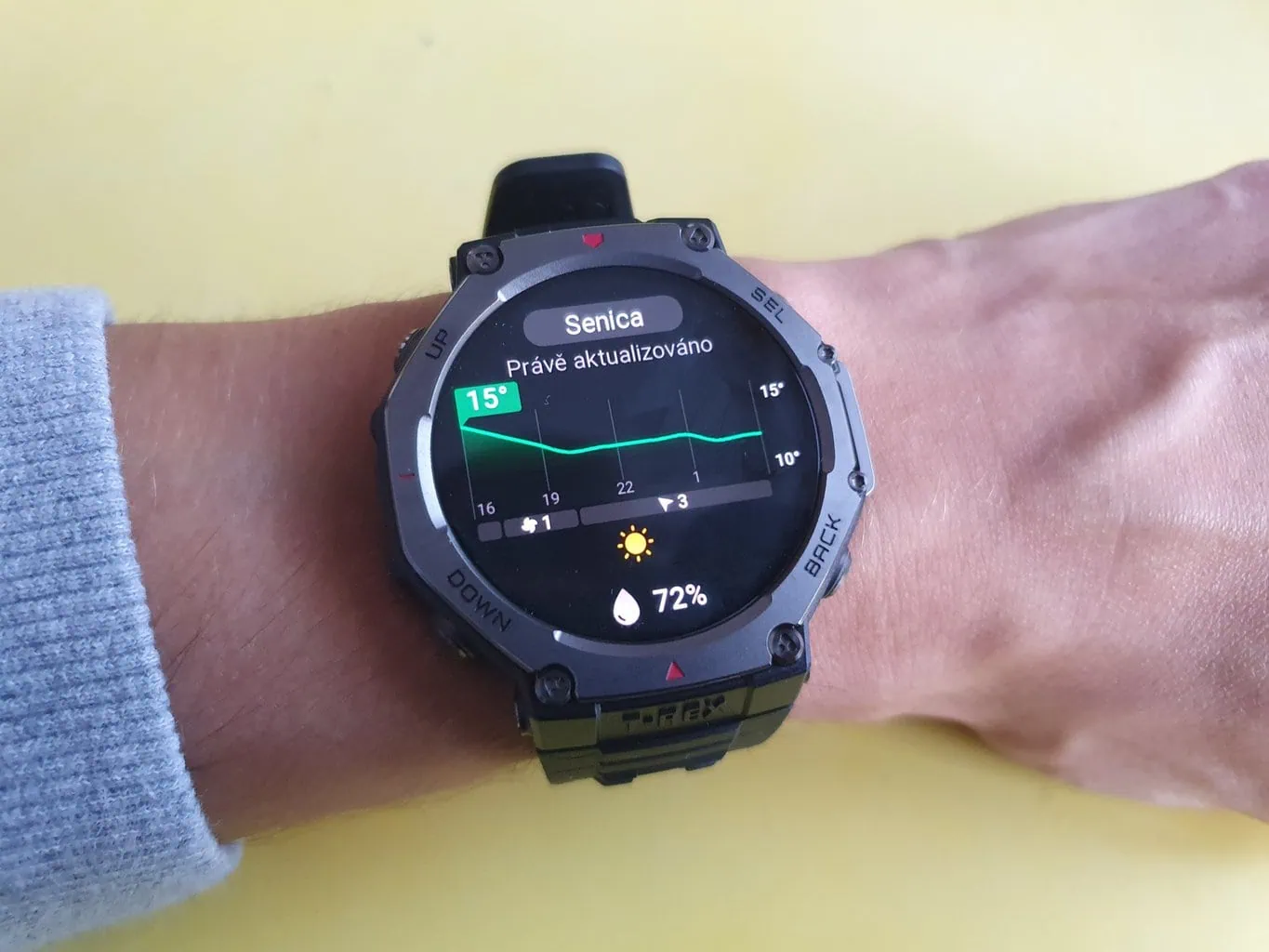 Zegarek mierzy temperaturę bez przerwy i nie można zmienić tego ustawienia. Urządzenie wyświetla aktualną temperaturę oraz wykres jej zmian. Wartości są oczywiście tylko orientacyjne i nie służą do celów diagnostycznych. Znaczący wpływ na temperaturę nadgarstka mają warunki otoczenia.