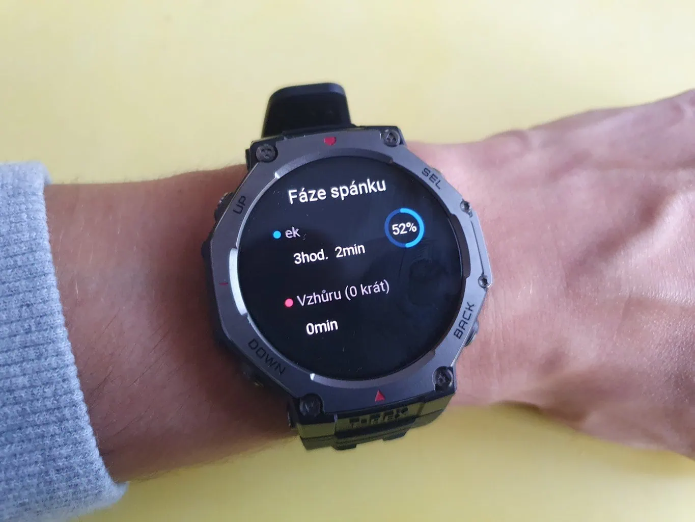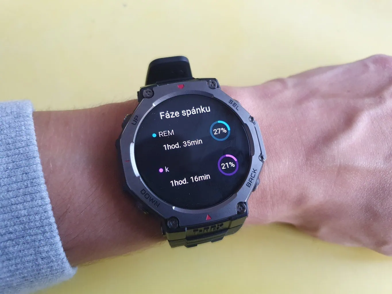 Zarejestrowanym danym towarzyszy krótki i zwięzły komentarz w aplikacji Zepp, który ułatwia ich zrozumienie. W przypadku pomiaru snu można ustawić przewidywany czas zasypiania i budzenia się. W tych momentach zegarek automatycznie uruchamia tryb uśpienia. W tym trybie urządzenie przestaje otrzymywać powiadomienia oraz wyłącza funkcję aktywacji wyświetlacza ruchem ręki.