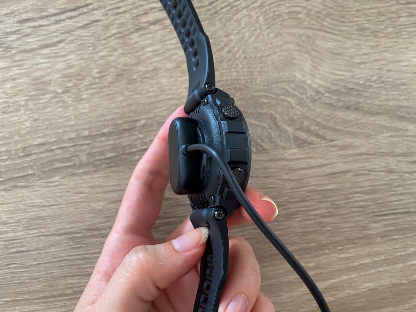 Ładowanie odbywa się za pomocą kabla magnetycznego dołączonego do zestawu. Pełne naładowanie zegarka trwa około 1,5 godziny.