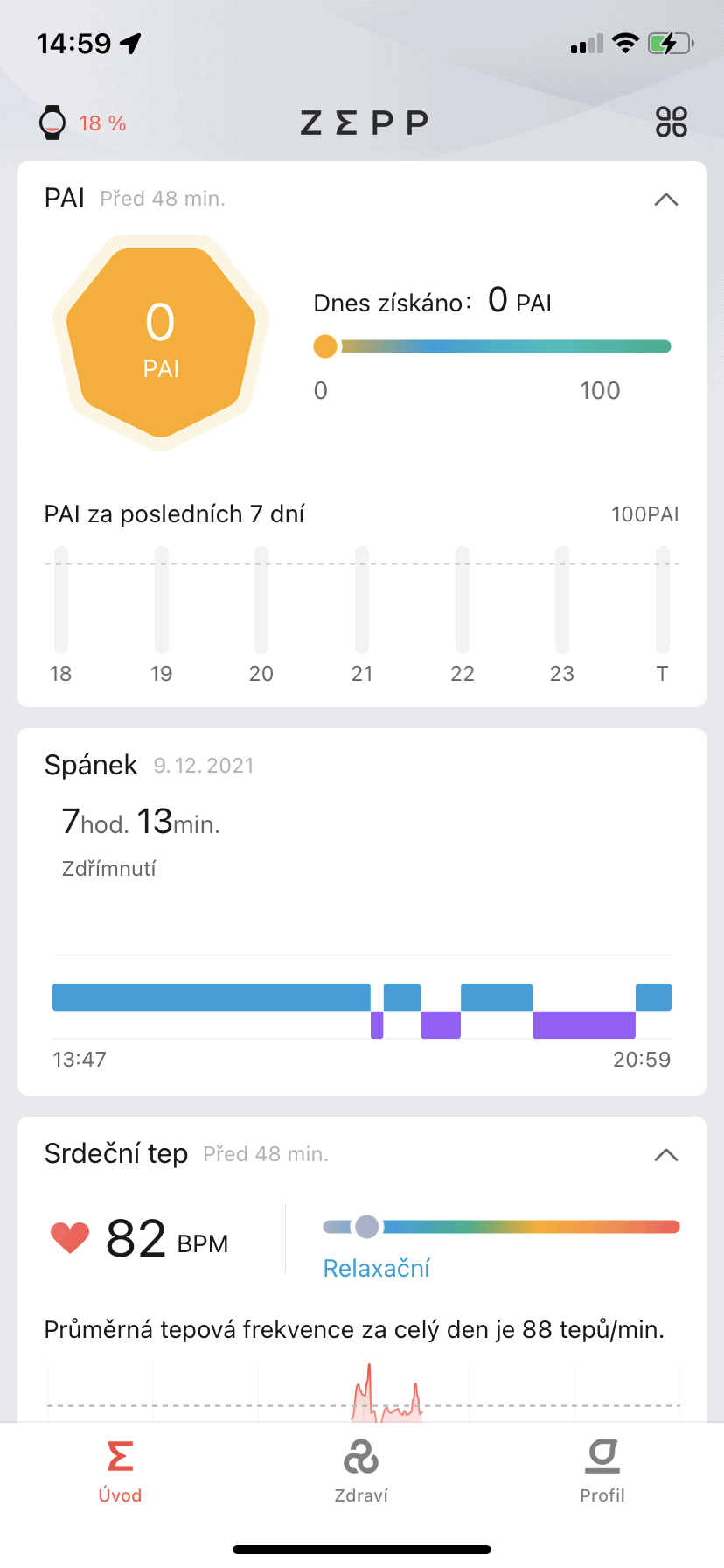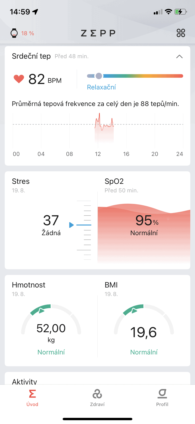 Do monitorowania statystyk i wygodnej konfiguracji smartwatcha służy wspomniana już aplikacja mobilna Zepp, która obsługuje język polski. Ekran główny zapewnia dostęp do przejrzystych statystyk dotyczących tętna, obciążenia stresem, a nawet jakości i przebiegu snu. W panelu można również przejrzeć historię swoich aktywności sportowych.