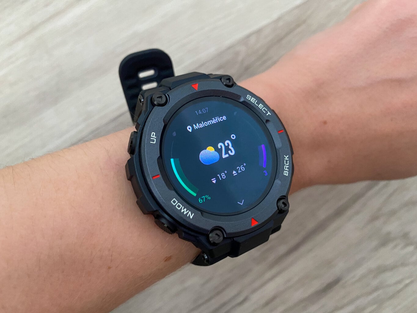 Wyświetlacz jest wystarczająco duży i dzięki temu zegarek pozostaje wygodny w użytkowaniu. Jednocześnie jest czytelny zarówno w pomieszczeniach, jak i w warunkach zewnętrznych, ale oczywiście nie osiąga takiej samej jakości jak wyświetlacze transflektywne w warunkach plenerowych.