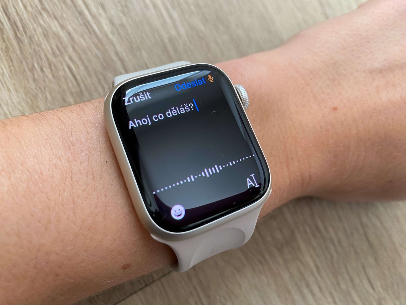 Długie przytrzymanie koronki Digital Crown uruchamia asystentkę głosową Siri, której można po prostu dyktować różne instrukcje lub na przykład poprosić ją o opowiedzenie dowcipu. Możesz komunikować się z nią po angielsku lub w dowolnym innym języku, który obsługuje. Niestety, asystentka nie rozmawia po polsku.
