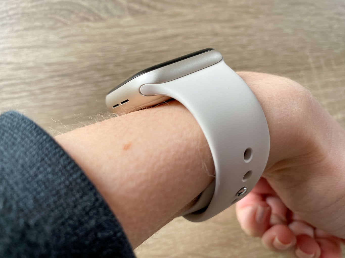 Jeśli porównamy Apple Watch SE 2. generacji do Apple Watch Series 7 i Series 8, SE ma o 20% mniejszy wyświetlacz i grubsze ramki. Jednak zegarek nadal pozostaje bardzo wygodny w użyciu, a wyświetlacz jest czytelny, nawet w świetle słonecznym.