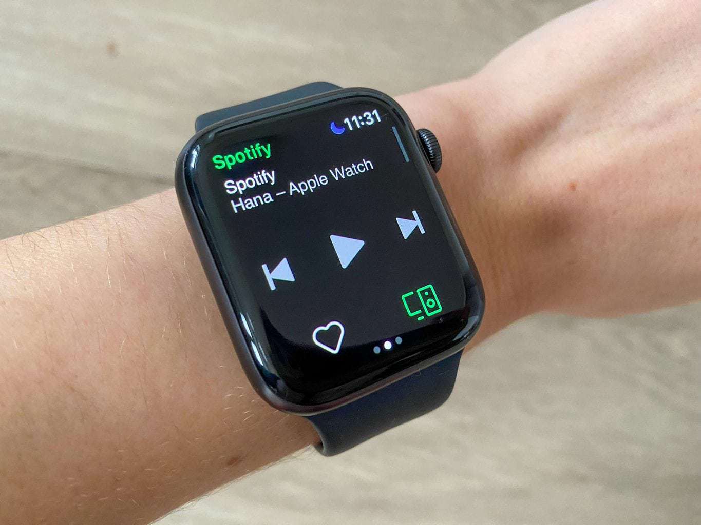 Zegarka można również używać do słuchania muzyki (przez głośnik lub podłączone słuchawki bezprzewodowe). Poszczególne utwory są odtwarzane za pomocą aplikacji innych firm (np. Spotify) lub aplikacji Muzyka.