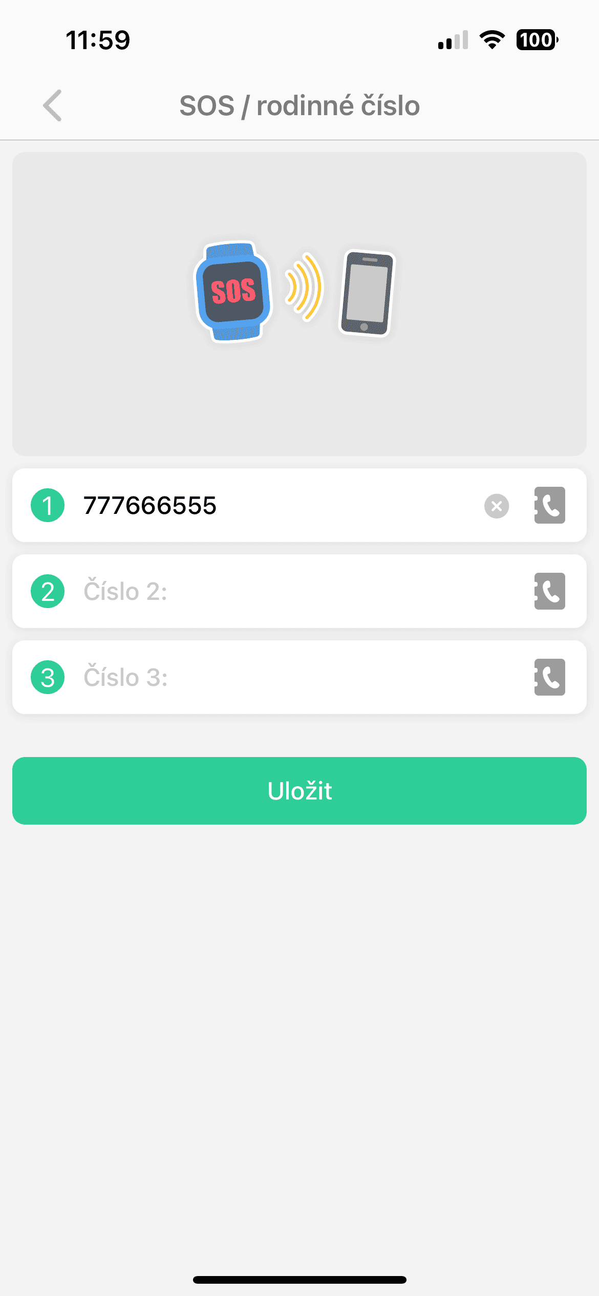 Jeśli Twoje dziecko znajdzie się w sytuacji kryzysowej, może nacisnąć przycisk SOS przez 3 sekundy, a automatycznie zostanie wybrane numer telefonu. W aplikacji mobilnej możesz ustawić trzy numery telefonów. Jeśli dziecko nie dodzwoni się do pierwszego z nich, automatycznie zostanie wybrany kolejny kontakt w kolejności.