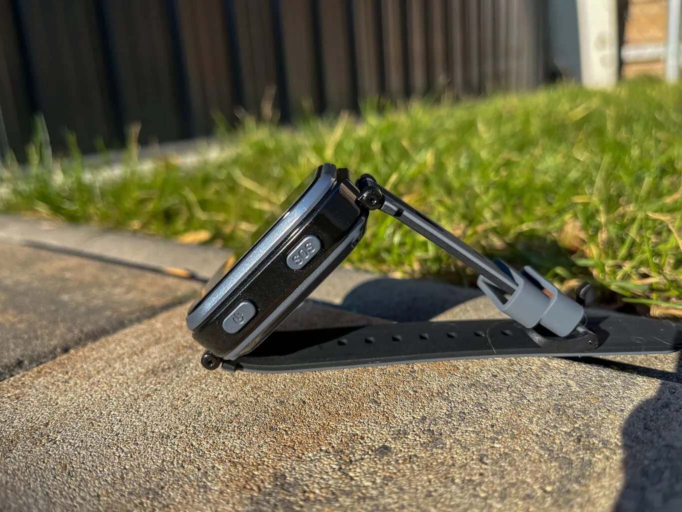 Na prawej bocznej stronie zegarka znajdują się dwa przyciski. Jeden z nich służy do włączania i wyłączania urządzenia (czyli aktywacji/dezaktywacji wyświetlacza), drugi jest przeznaczony do wywołania połączenia SOS (o tym za chwilę). Przyciski są lekko wystające i można je łatwo wyczuć nawet po omacku, co może być przydatne w sytuacjach kryzysowych.