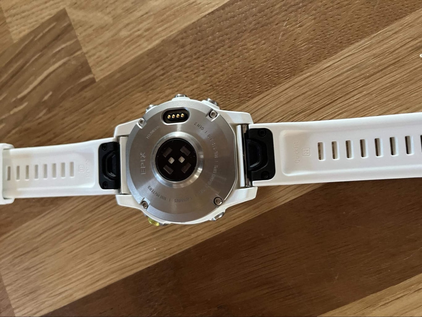 Bateria EPIX 2 jest ładowana za pomocą zwykłego, firmowego kabla zasilającego Garmin, który podłącza się z tyłu zegarka. Nie jest to tak wygodne jak bezprzewodowe ładowanie indukcyjne, ale, w przeciwieństwie do wielu ładowarek z klipsem, kabel nie wypada z urządzenia i trzyma się na swoim miejscu. Ponadto przewód pasuje do wszystkich modeli tej firmy, więc jeśli dokonujesz aktualizacji ze starszego modelu Garmina na nowszy, możesz zachować oryginalną ładowarkę jako zapasową.