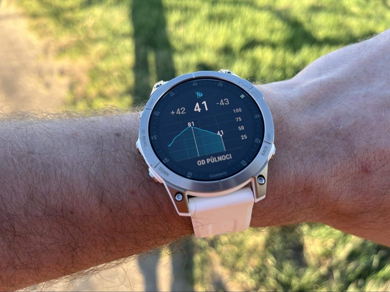 - Latarka - nie jest to latarka LED jak w przypadku modeli Fenix 7, ale światło rzucane jest za pomocą wyświetlacza, który zmienia kolor na biały, co zapewnia jak największy poziom oświetlenia.