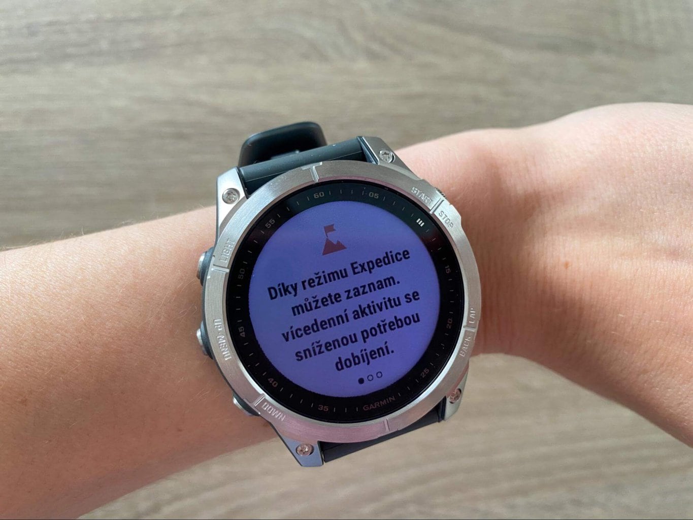 Tryb ekspedycji służy do rejestrowania wielodniowej aktywności. Urządzenie przełącza się w tryb oszczędzania energii i zbiera punkty trasy GPS raz na godzinę. W tym samym czasie połączenie ze smartfonem jest wyłączane, co dodatkowo oszczędza poziom naładowania baterii.