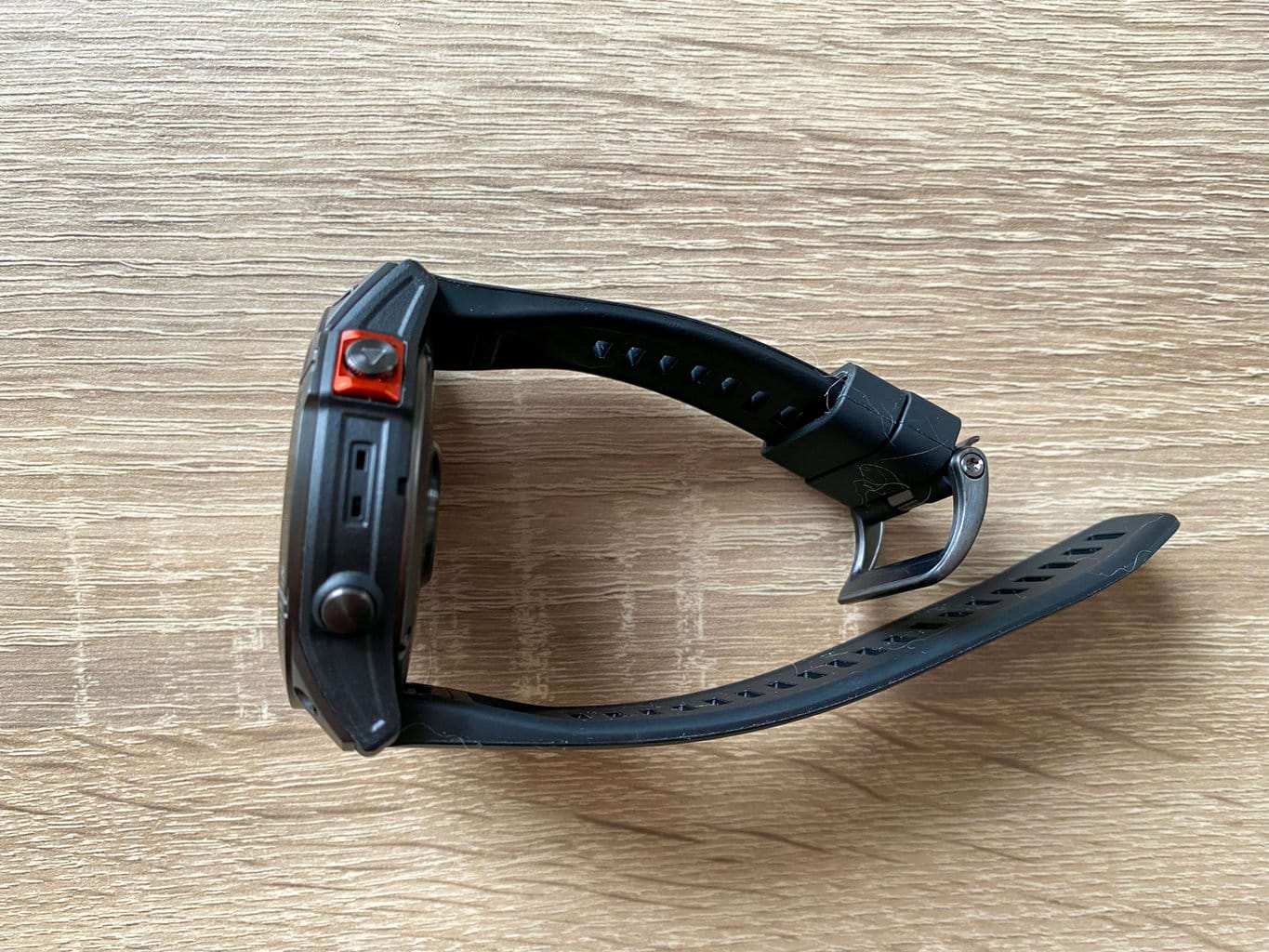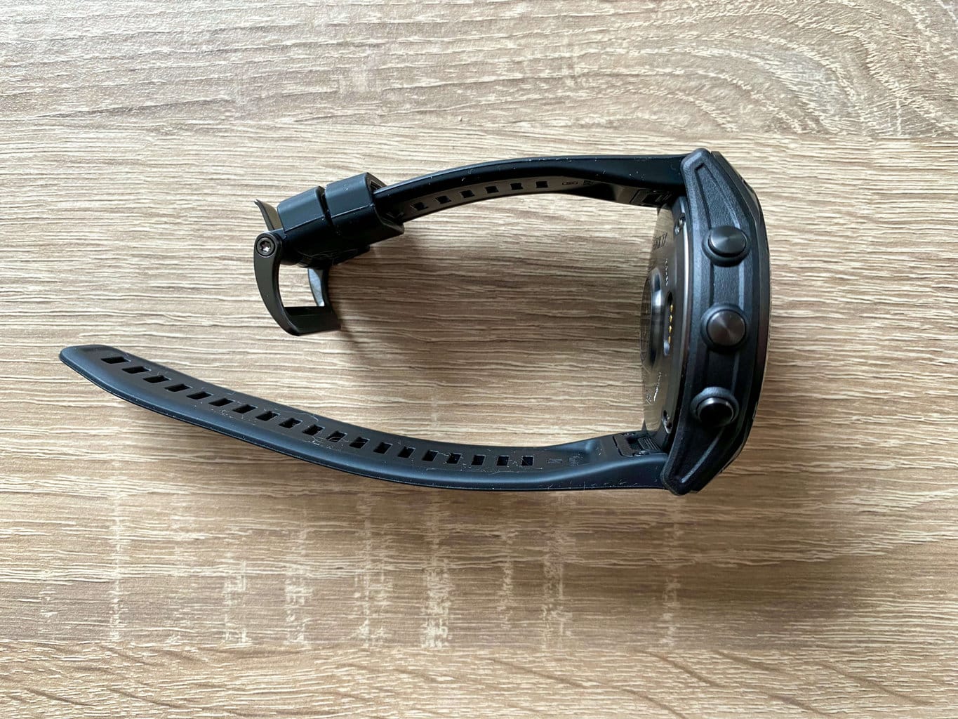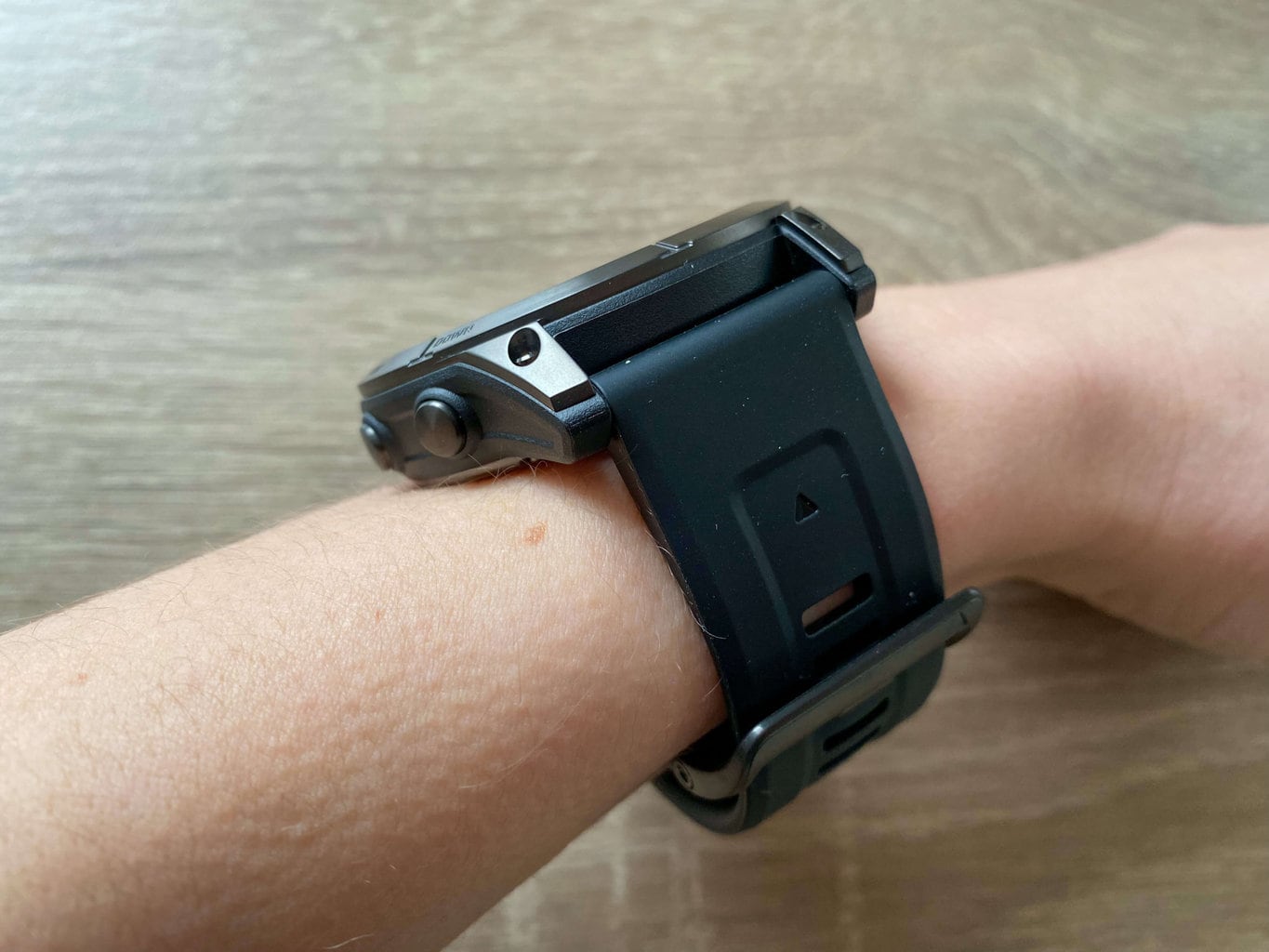 Już na pierwszy rzut oka zegarek Garmin sprawia wrażenie bardzo wytrzymałego i solidnego, a tego właśnie oczekujemy od zegarka outdoorowego. Urządzenie jest dość duże, będzie więc pasować raczej na szersze, męskie nadgarstki.