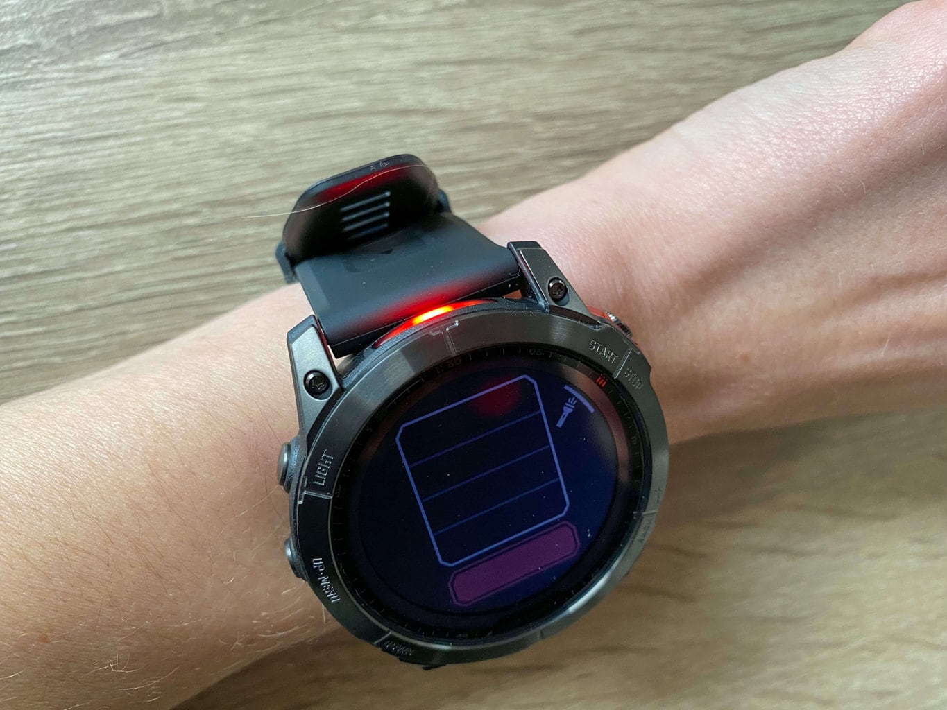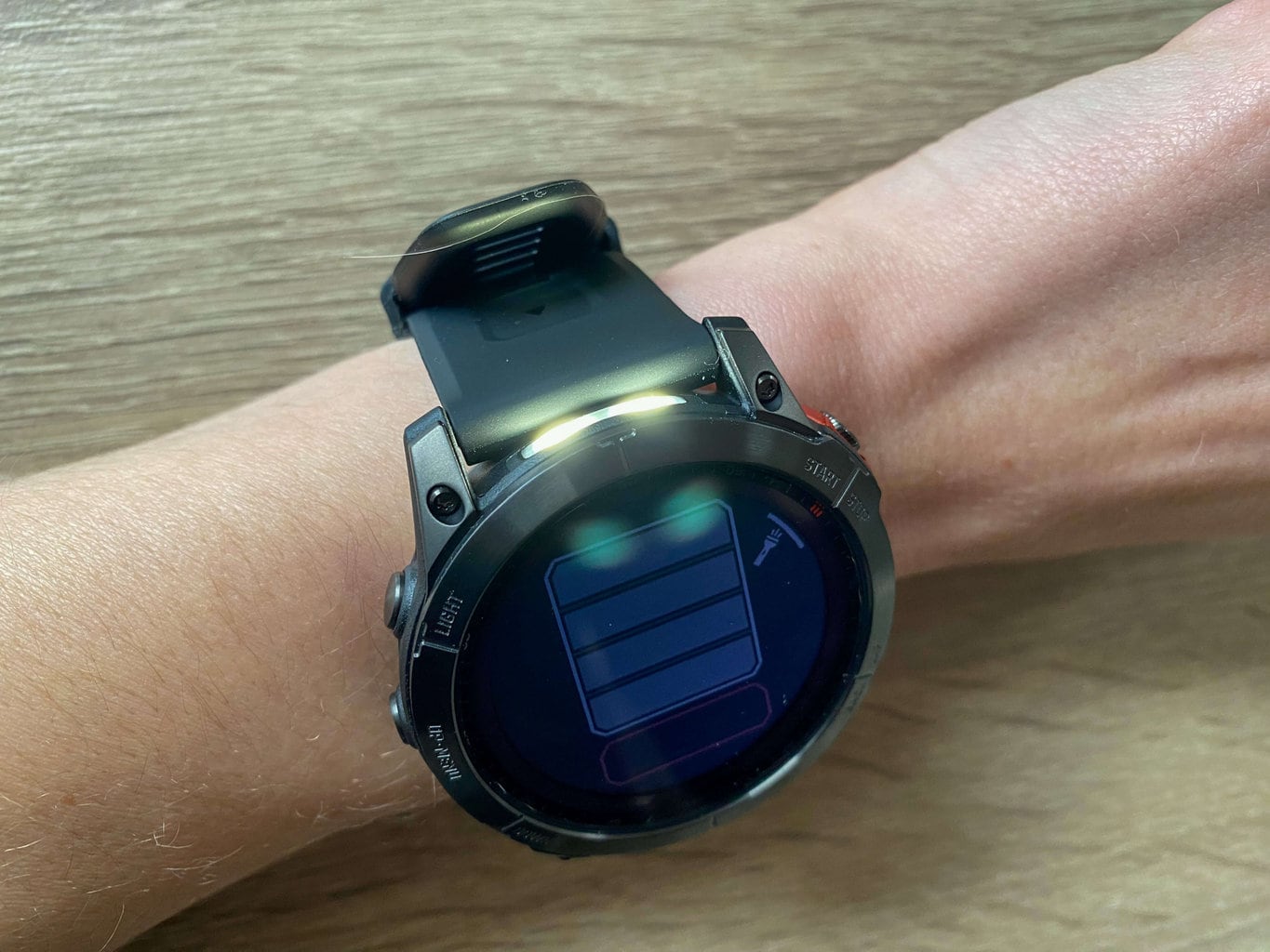 Przetestowaliśmy ładowanie słoneczne, ale niestety pogoda w czasie testów nie była dobra. Dlatego nie mogliśmy umieścić zegarka w bezpośrednim świetle słonecznym. Kiedy umieściliśmy urządzenie na podkładce pod pochmurnym niebem, pojemność baterii nie wzrosła (zegarek raczej się rozładowywał). To samo dotyczyło zegarka noszonego normalnie na ręce, a nie celowo wystawionego na bezpośrednie działanie źródła światła. Należy podkreślić, że testy zostały przeprowadzone zimą przy niesprzyjającej pogodzie; być może uzyskalibyśmy inne wyniki w letnich miesiącach. Aby dowiedzieć się, jak działa ładowanie słoneczne, możesz przeczytać naszą recenzję Garmin Instinct 2, gdzie mogliśmy dokładniej przetestować tę funkcję.