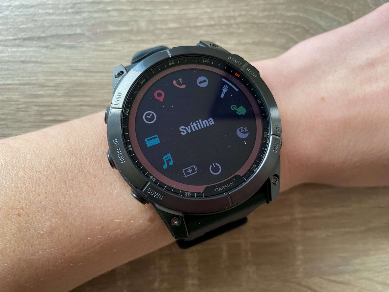 W zegarku można również opcjonalnie włączyć lub wyłączyć podświetlenie wyświetlacza. Służy do tego przycisk oznaczony słowem Light znajdujący się po lewej stronie zegarka. Do sterowania zegarkiem służy zarówno ekran dotykowy, jak i pięć przycisków umieszczonych po bokach. Dwa przyciski znajdują się po prawej stronie, a trzy po lewej.