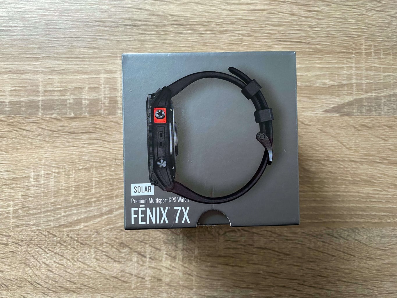 Smartwatch Garmin Fenix 7X jest sprzedawany w prostym szarym pudełku, podobnie jak w przypadku innych zegarkach tej samej marki. Całkowite wymiary opakowania wynoszą 9,5 × 9,5 × 9,5 cm, a jego waga to 325 gramów.