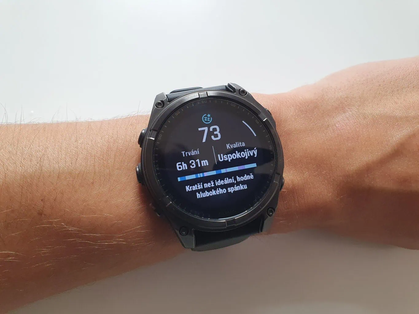 Garmin Fenix 8 obsługuje funkcję Jet Lag Adviser, aby pomóc dostosować organizm do pobytu w nowych strefach czasowych. Dostępny jest również termometr do pomiaru temperatury nadgarstka lub szczegółowe monitorowanie snu wraz z tzw. asystentem snu.