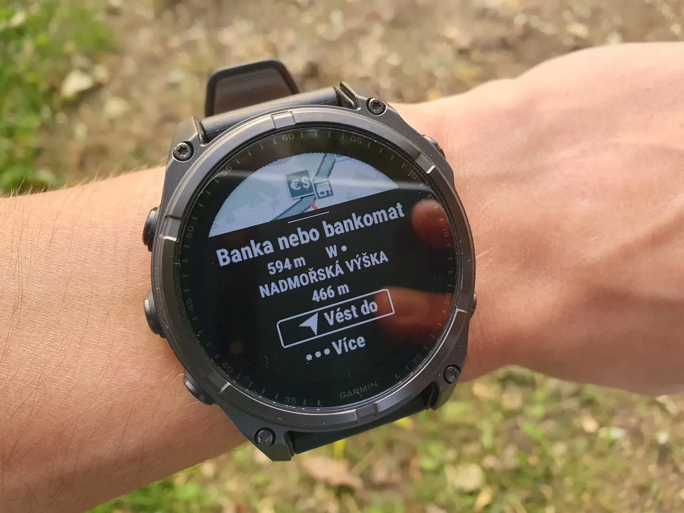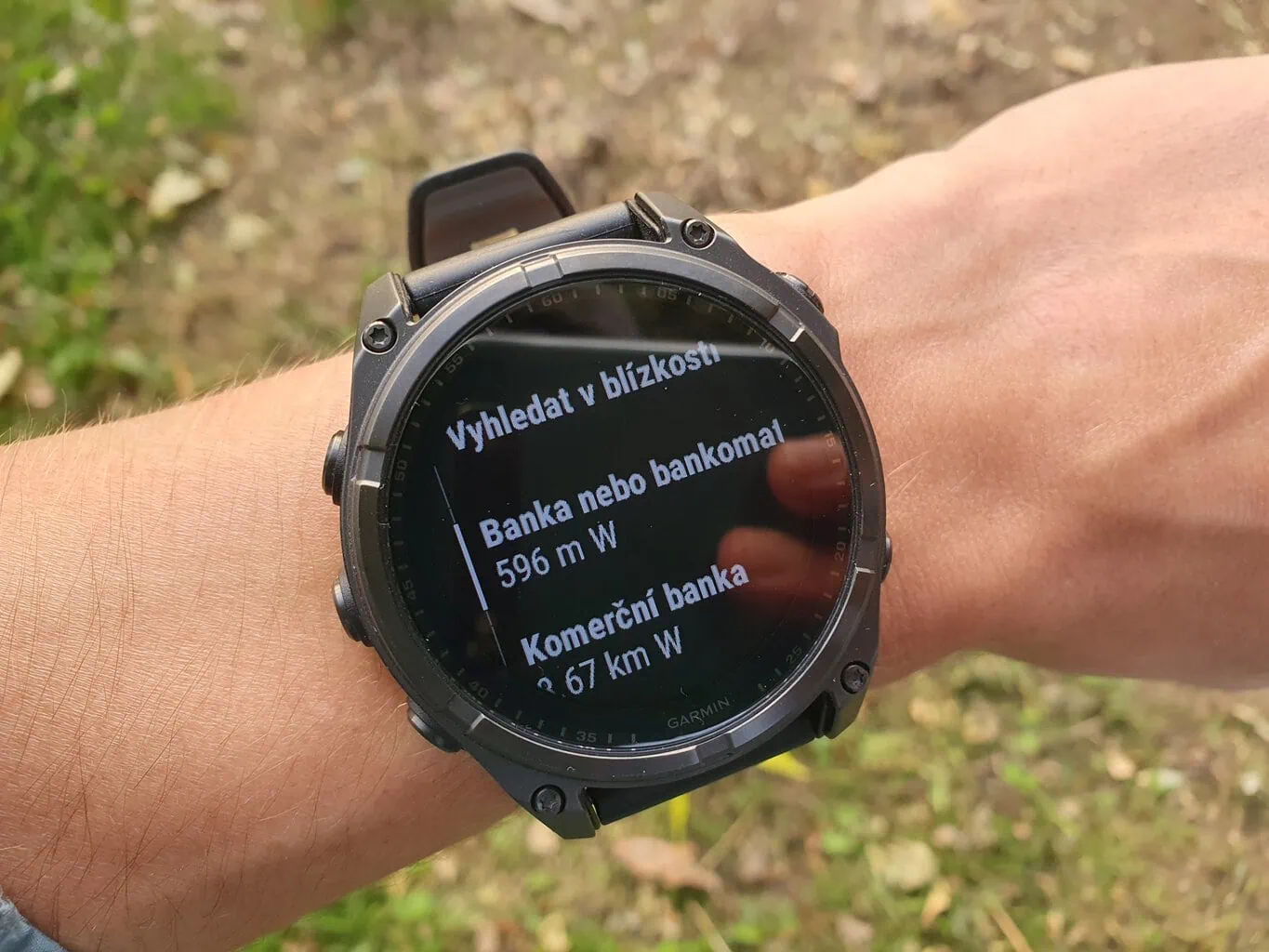 Nawigację można rozpocząć bezpośrednio w aplikacji, która poprowadzi nas do wybranego punktu na mapie, zapisanych punktów lub ręcznie wprowadzonych współrzędnych. Funkcja Poznanie okolicy pozwala znaleźć pobliskie punkty zainteresowania (np. toalety, restauracje) i nawigować do nich, nawet jeśli nie wyświetla ulicy lub miasta, w którym się znajdują. Na zegarku możesz także wyznaczyć obszar aktywności, co jest idealnym rozwiązaniem na przykład podczas biegania w nieznanej lokalizacji.