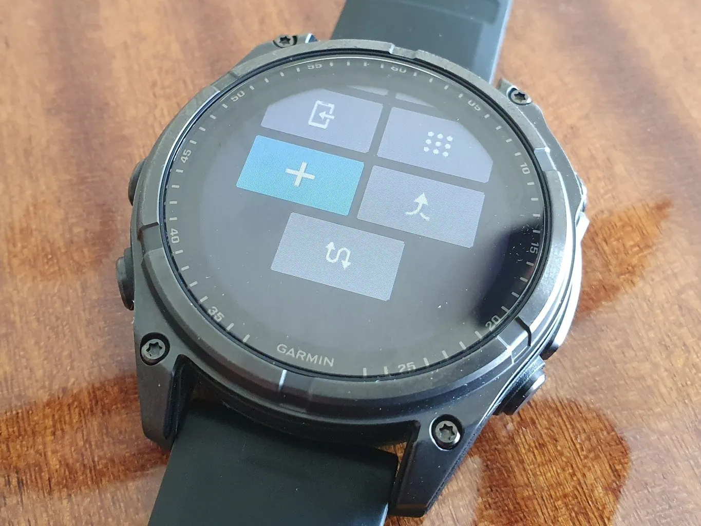 Po bokach wyświetlacza znajduje się pięć przycisków charakterystycznych dla zegarków Garmin. Dzięki nim można w pełni obsługiwać zegarek, podobnie jak za pomocą dotyku. Przyciski nie są fizycznie wbudowane w kopertę, lecz wykorzystują indukcję do przesyłania informacji. Dzięki temu zegarek jest bardziej odporny na czynniki zewnętrzne niż np. Garmin Enduro 3 czy Fenix 7 i powinien wytrzymać nurkowanie na głębokość 40 metrów.