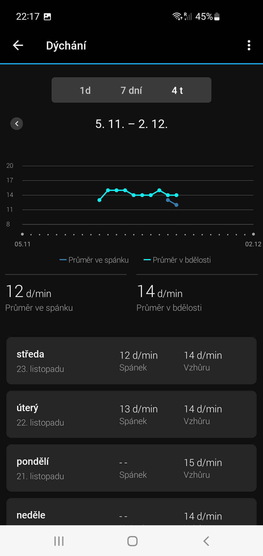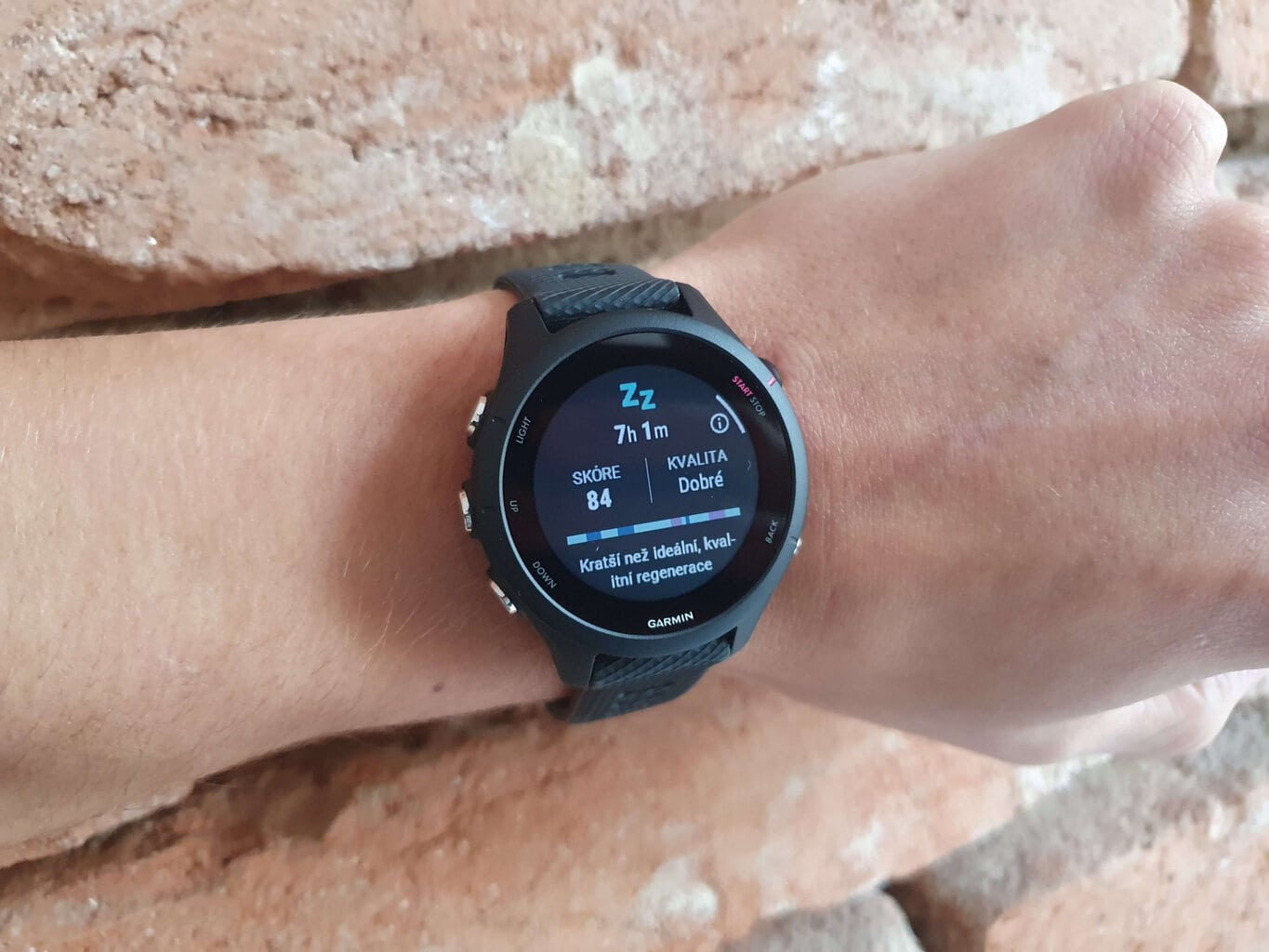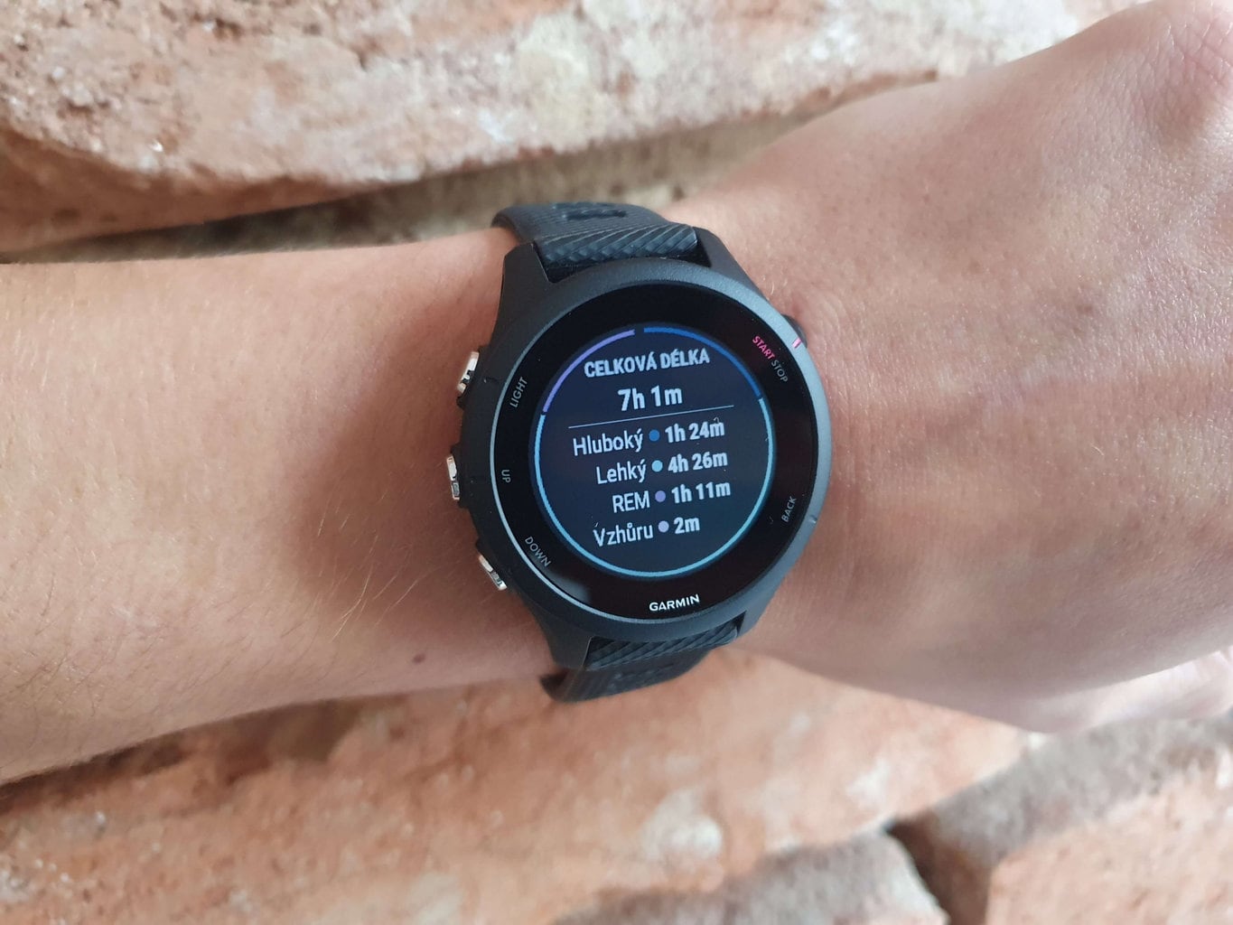 Forerunner 255S Music może dość dokładnie śledzić sen. Oprócz czasu trwania snu, zegarek monitoruje również zmienność tętna i fazę snu, w której znajduje się Twoje ciało (deep, light, REM, awake).