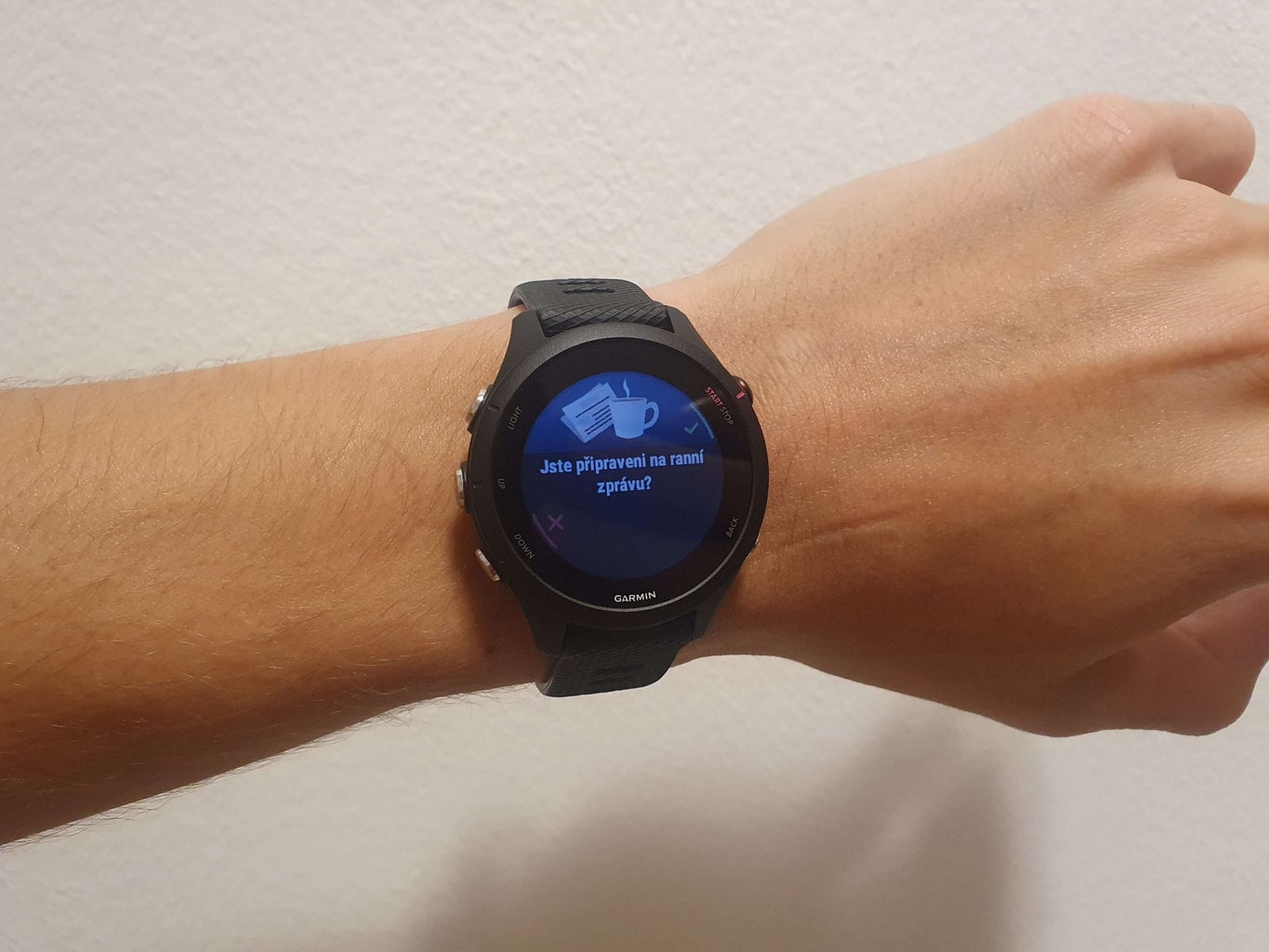 Nie daj się zwieść nazwie tej funkcji. To nie jest zwykłe "Dzień dobry". Oczywiście zegarek będzie Ci życzył dobrego dnia, ale ponadto zaoferuje klarowny przegląd tego, co czeka Cię danego dnia. Na głównym ekranie znajdziesz aktualną pogodę, godzinę i oczywiście datę. Możesz także użyć przycisku Down, aby wyświetlić inne dane, takie jak: